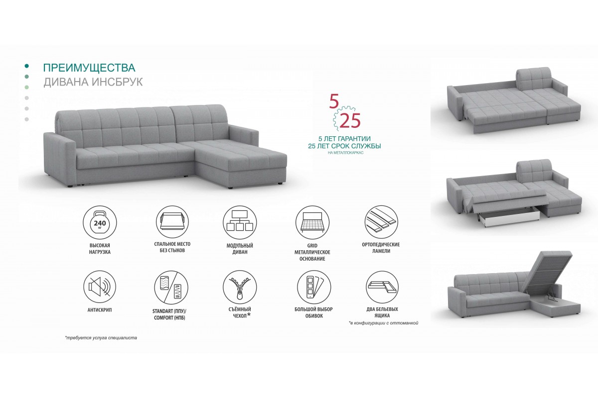 Угловой диван Инсбрук NEXT 24 155 мини аккордеон микровелюр бежевый 276х90х157 металлокаркас артикул 10310450