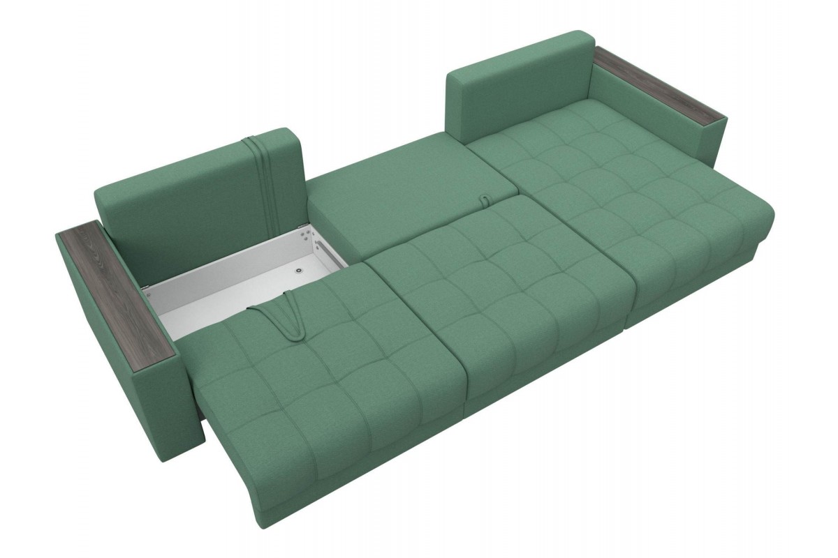 Диван угловой с декором Лидиа-049 НПБ Лонг еврокнижка рогожка зеленый 330х90х158 лДСП, Брус, Фанера артикул 10420709