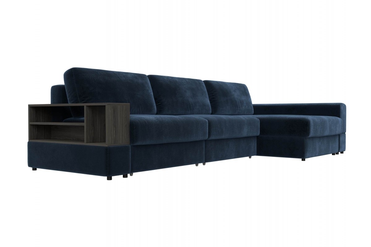 Диван угловой с полкой Лидиа-055 НПБ Лонг еврокнижка велюр синий 345х92х160 лДСП, Брус, Фанера артикул 10425311