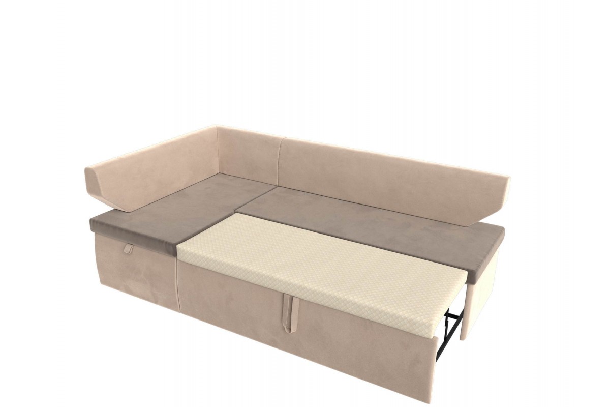 Кухонный угловой диван Омура Левый дельфин велюр коричневый, Бежевый 188х79х110 фанера, Рейка, ЛДВП, Доска, Брус, ДВП, ДСП, ЛДСП артикул 10201816