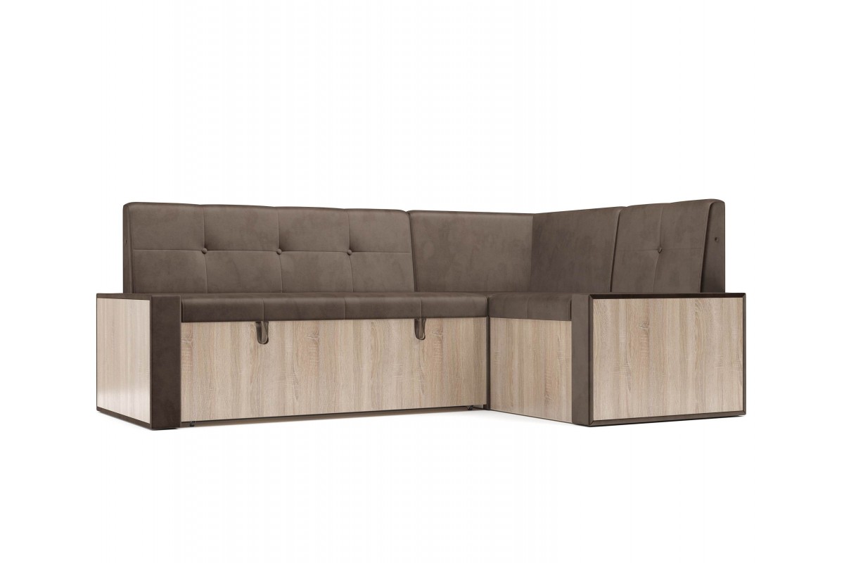 Кухонный угловой диван Таллин (98х166) дельфин вельвет бархатного типа, ЛДСП коричневый 191х83х121 лДСП, Брус сосны, Фанера артикул 10344340