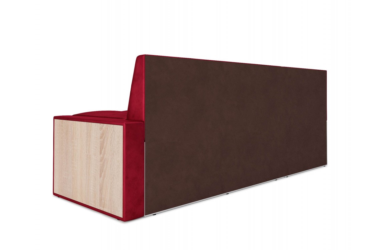 Кухонный угловой диван Таллин Левый (118х184) дельфин лДСП, Вельвет бархатного типа красный 210х83х140 брус сосны, Фанера, ЛДСП артикул 10260129