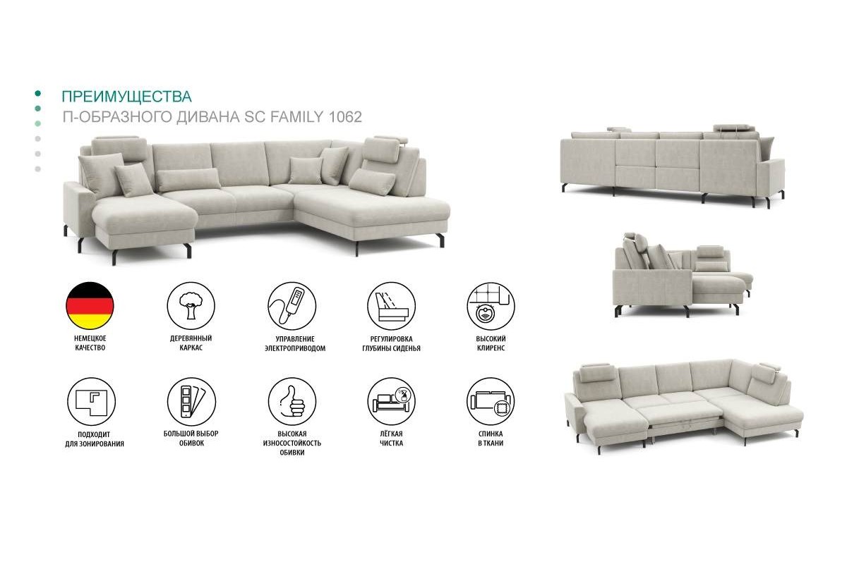 П-образный диван Family дельфин микрошенилл красный 337х89х220 дерево артикул 10435217