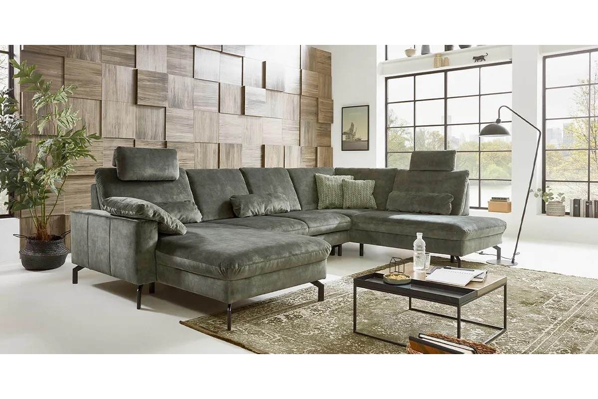 П-образный диван Family рогожка серый 337х89х220 дерево артикул 10435587