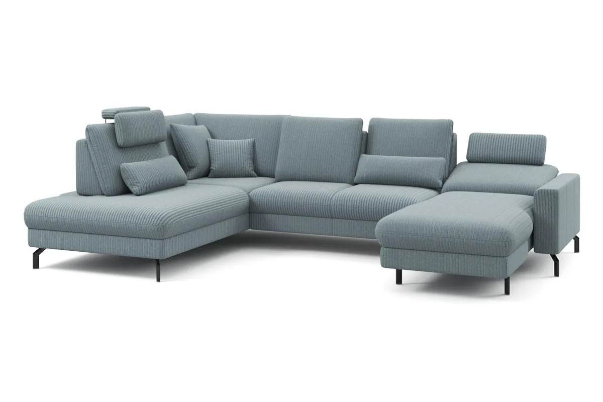 П-образный диван Family велюр голубой 337х89х220 дерево артикул 10435639