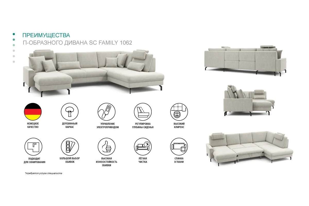 П-образный диван Family дельфин велюр голубой 337х89х220 дерево артикул 10435683
