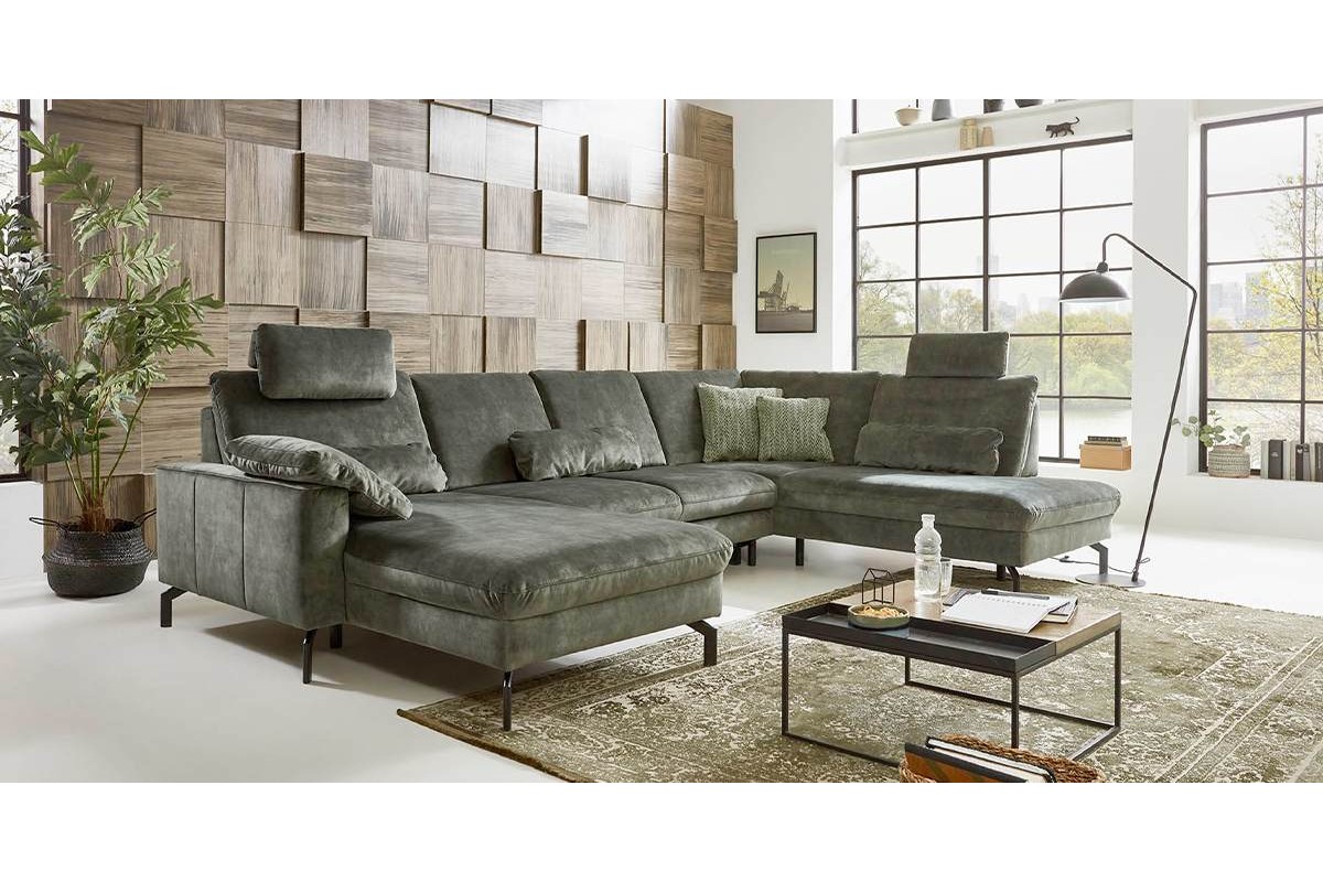 П-образный диван Family велюр бежевый 337х89х220 дерево артикул 10435698
