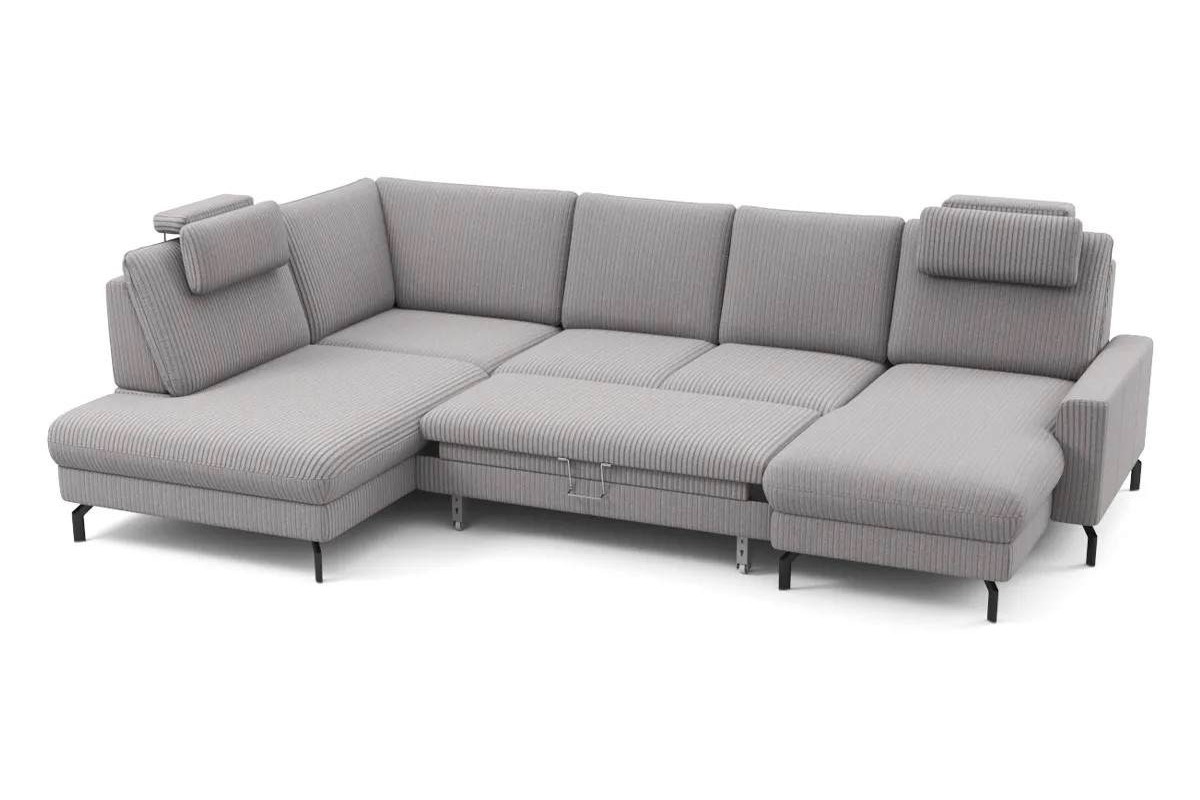 П-образный диван Family дельфин велюр серый 337х89х220 дерево артикул 10435731