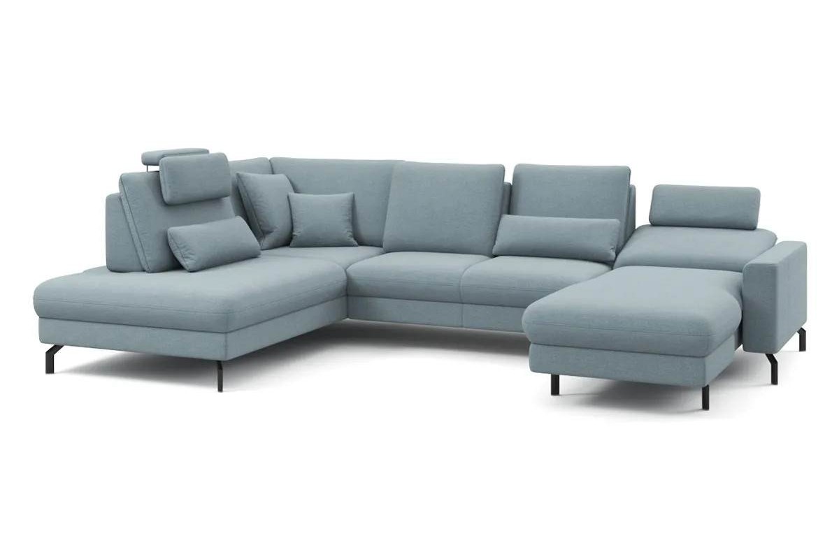 П-образный диван Family микрошенилл голубой 337х89х220 дерево артикул 10435752