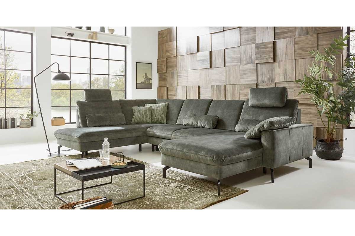 П-образный диван Family микрошенилл серый 337х89х220 дерево артикул 10435754
