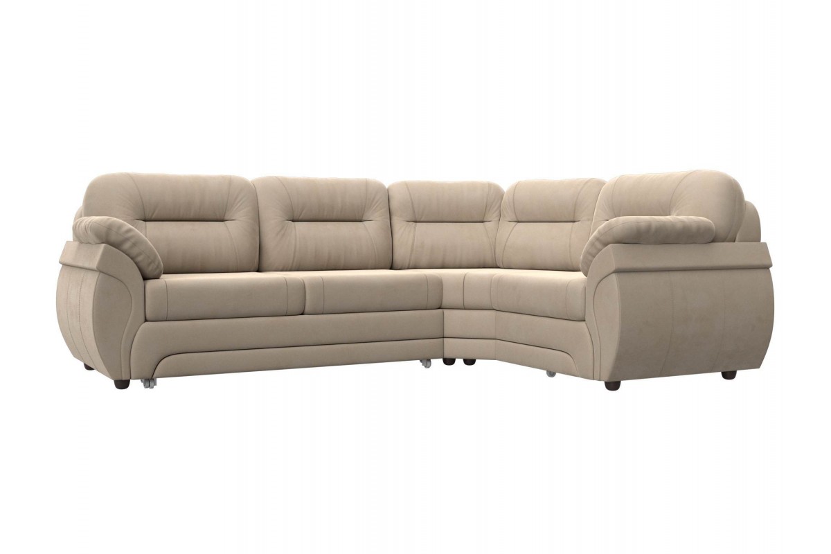 Угловой диван Бруклин Правый дельфин велюр бежевый 295х104х200 фанера артикул 10066650