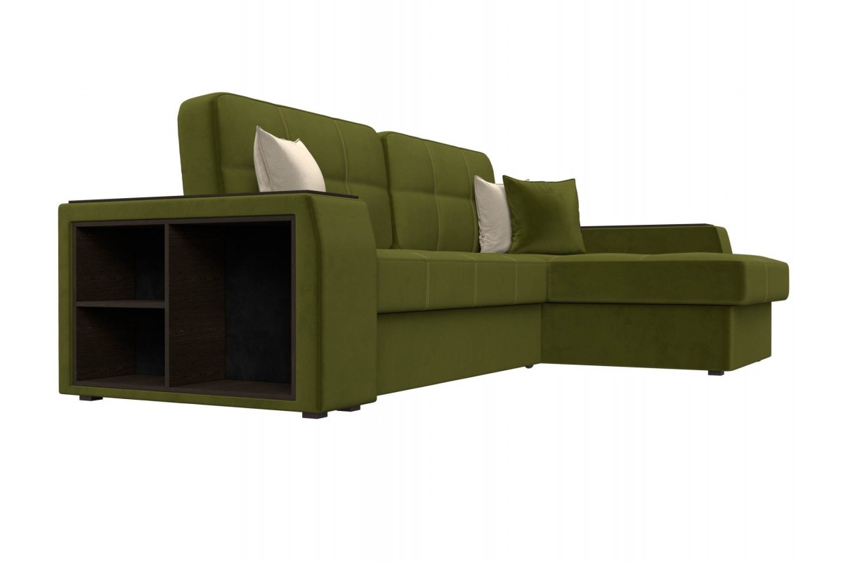 Угловой диван Брюссель Правый дельфин микровельвет зеленый, Бежевый 260х95х175 лДСП, ДСП артикул 10032815