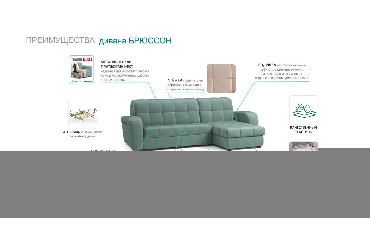 Угловой диван Брюссон NEXT 24 155 К-2 мини аккордеон шенилл серый 294х92х199 металлокаркас артикул 10382876