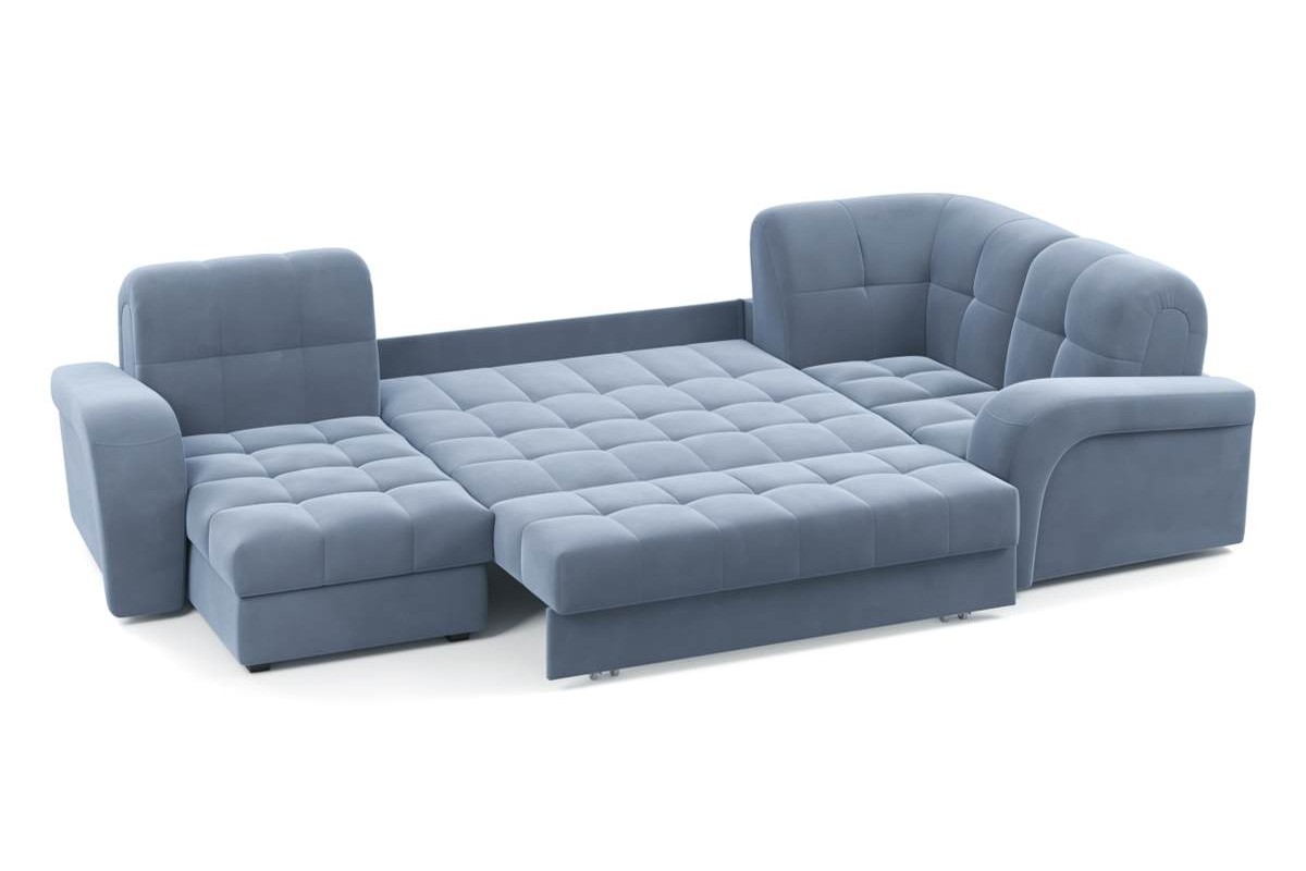 - Угловой диван Брюссон NEXT 24 155 К-3 мини с оттом аккордеон микровелюр синий 379х92х199 металлокаркас артикул 10213423