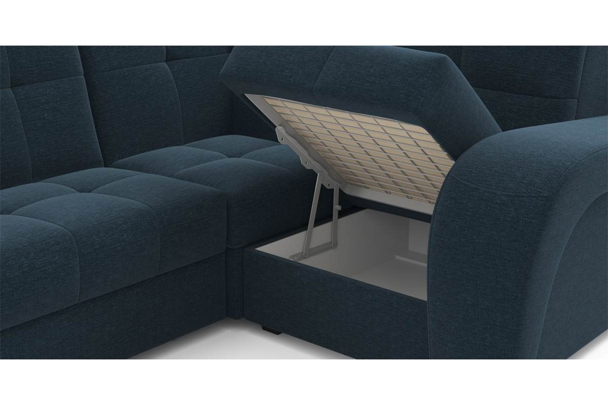 Угловой диван Брюссон NEXT 24 155 К-3 мини с оттом аккордеон шенилл синий 379х92х199 металлокаркас артикул 10387700