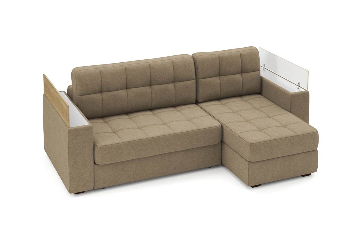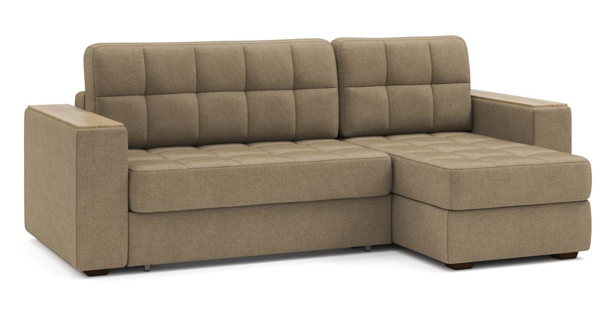 Угловой диван Гринвич NEXT 22 узкие подлокотники декор дуб каньон тик-так рогожка коричневый 256х100х160 металлокаркас артикул 10478364