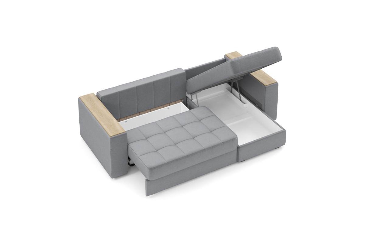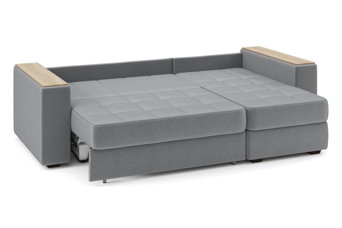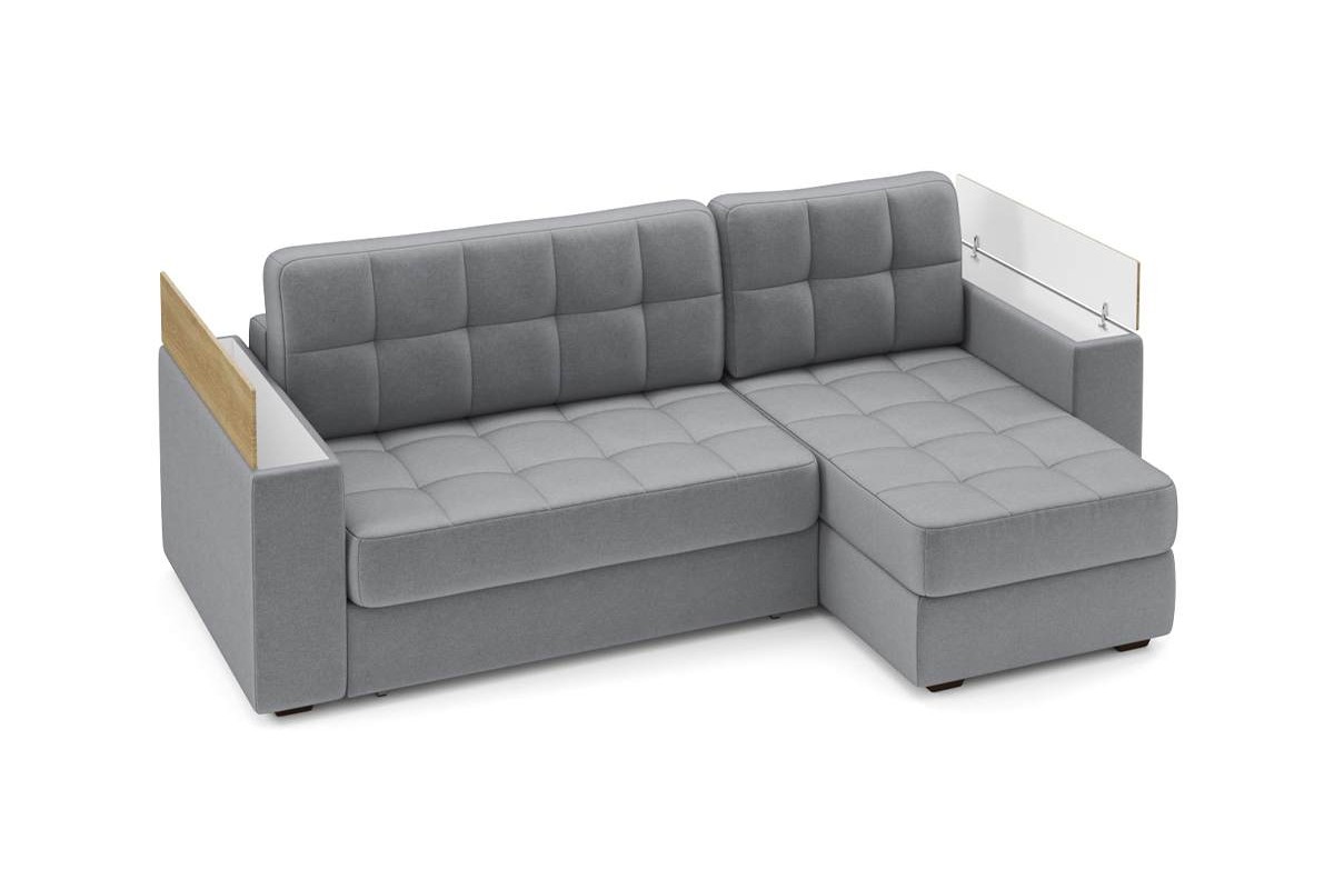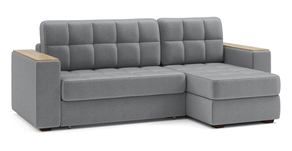 Угловой диван Гринвич NEXT 22 узкие подлокотники декор дуб каньон тик-так микровелюр серый 256х100х160 металлокаркас артикул 10478368