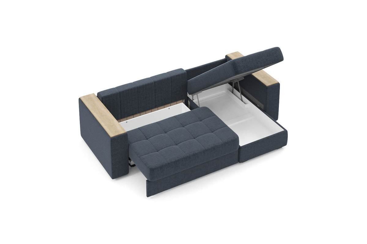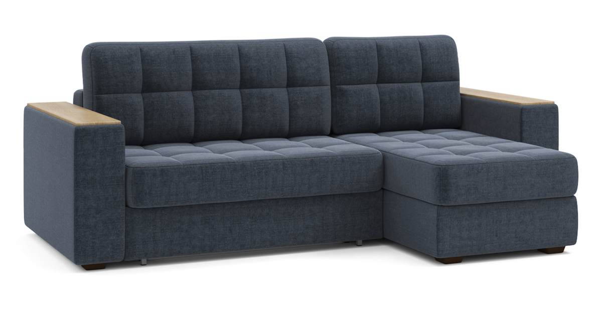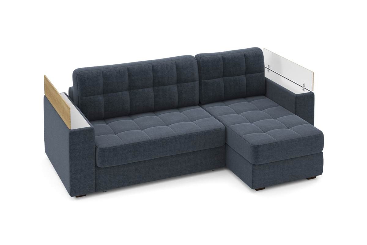 Угловой диван Гринвич NEXT 22 узкие подлокотники декор дуб каньон тик-так шенилл синий 256х100х160 металлокаркас артикул 10478376