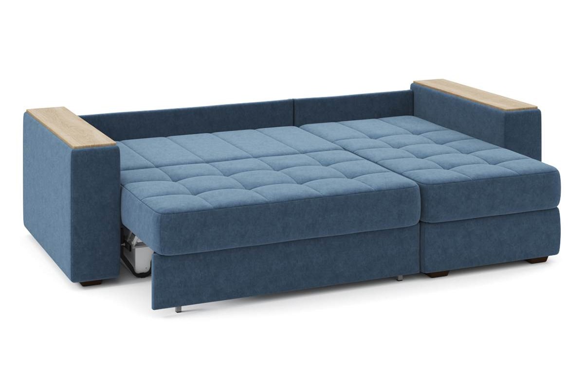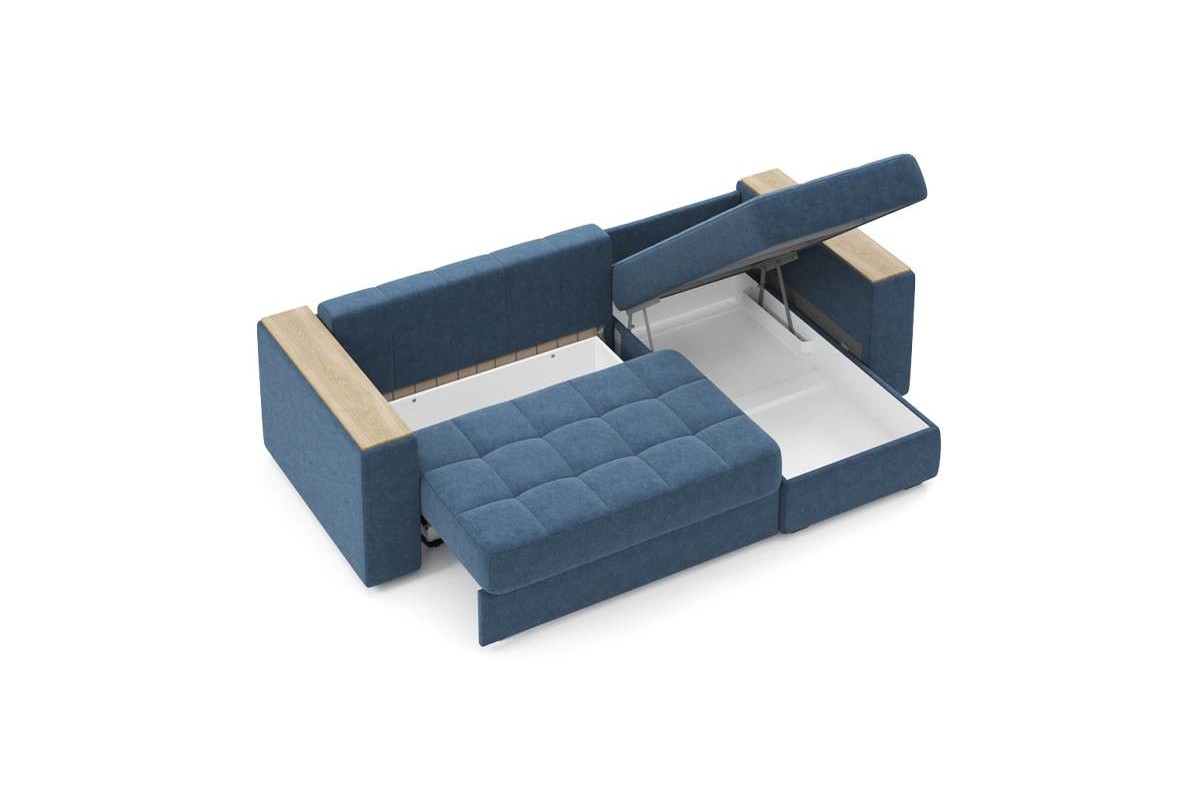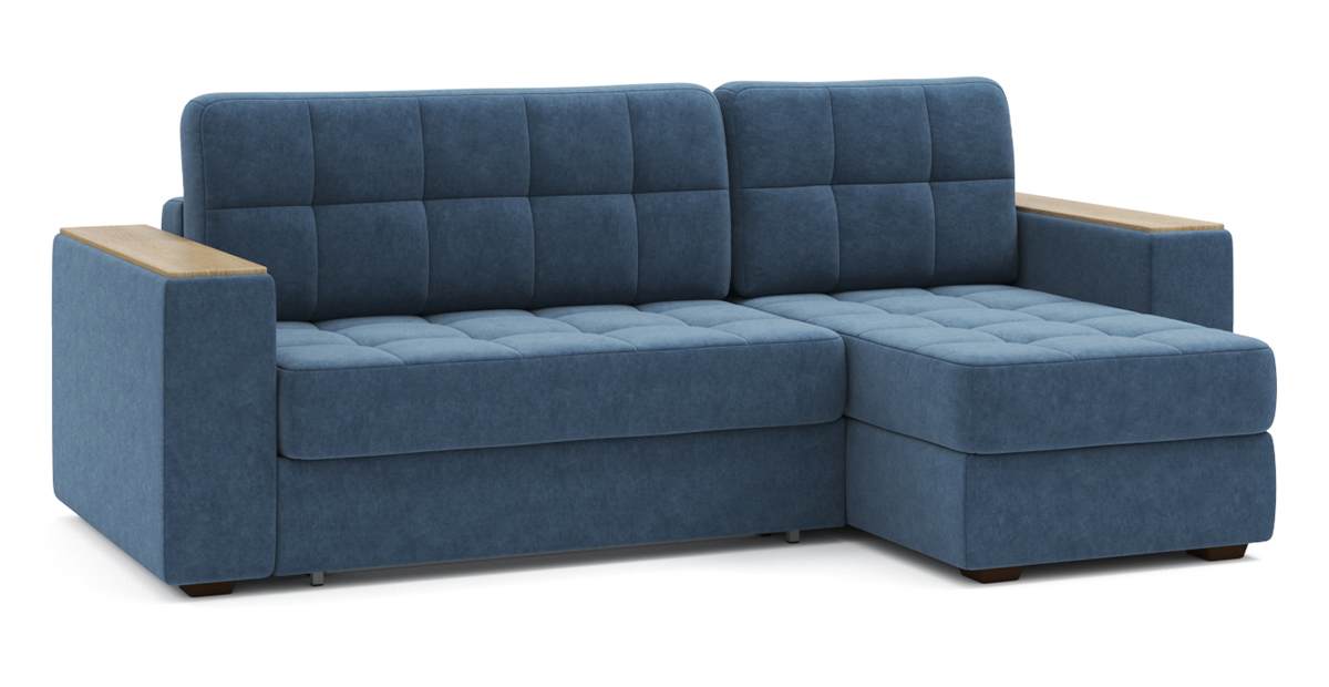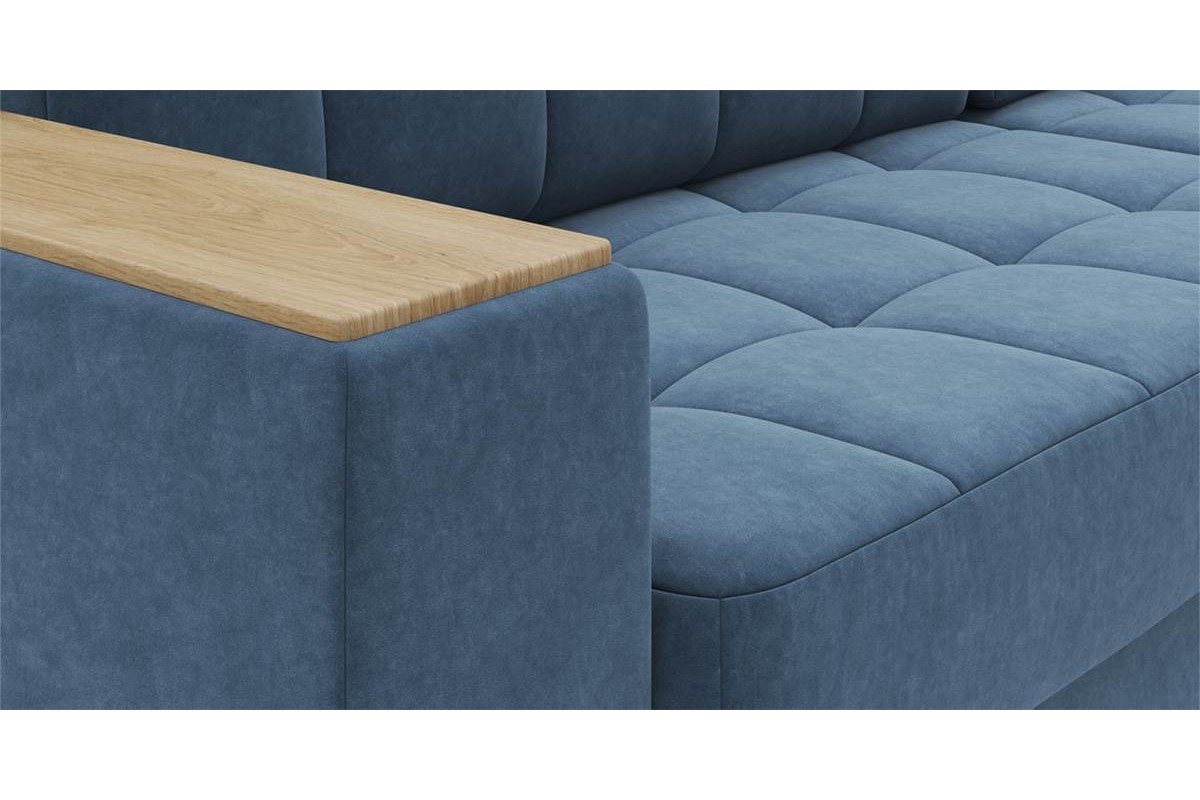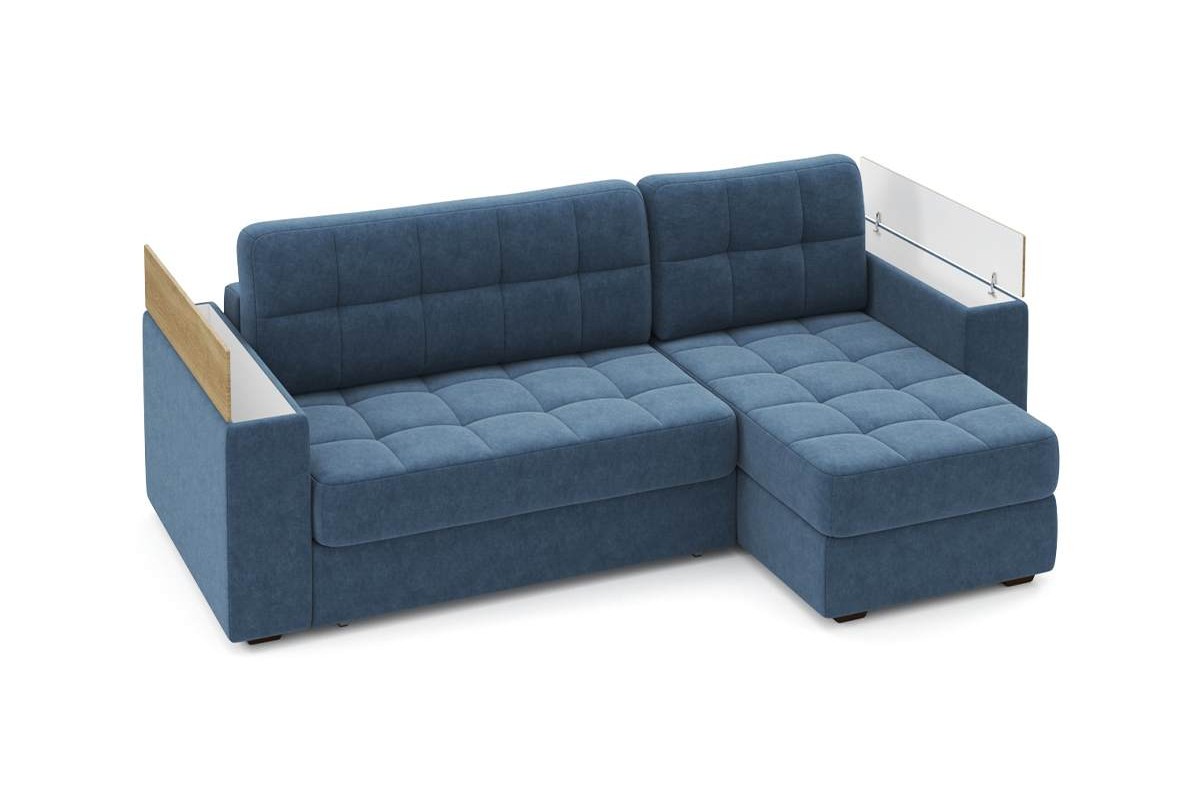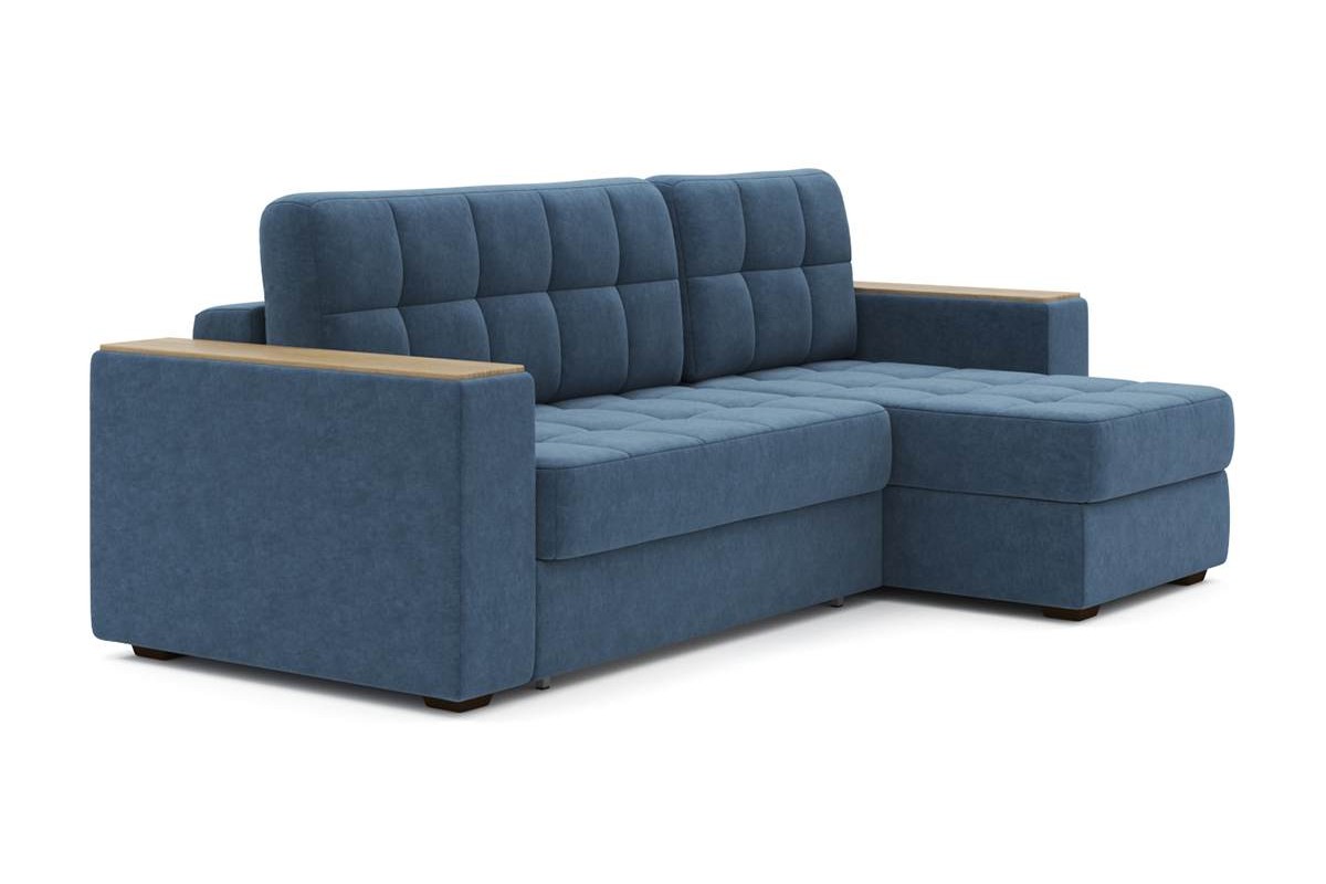 Угловой диван Гринвич NEXT 22 узкие подлокотники декор дуб каньон тик-так велюр синий 256х100х160 металлокаркас артикул 10478378