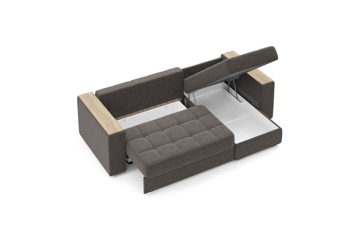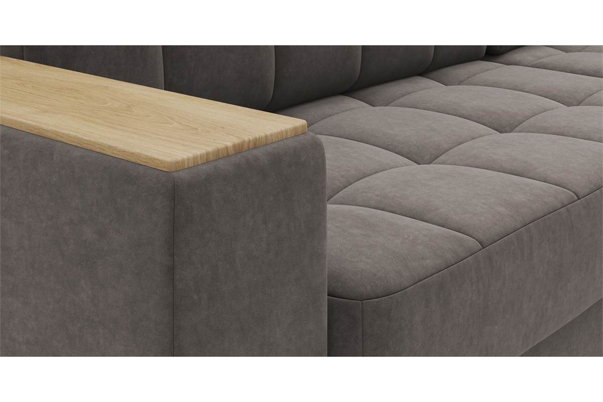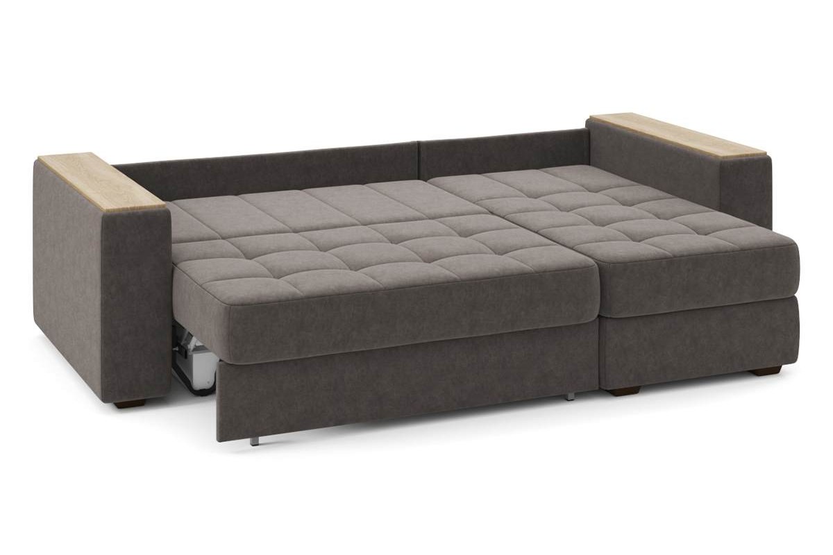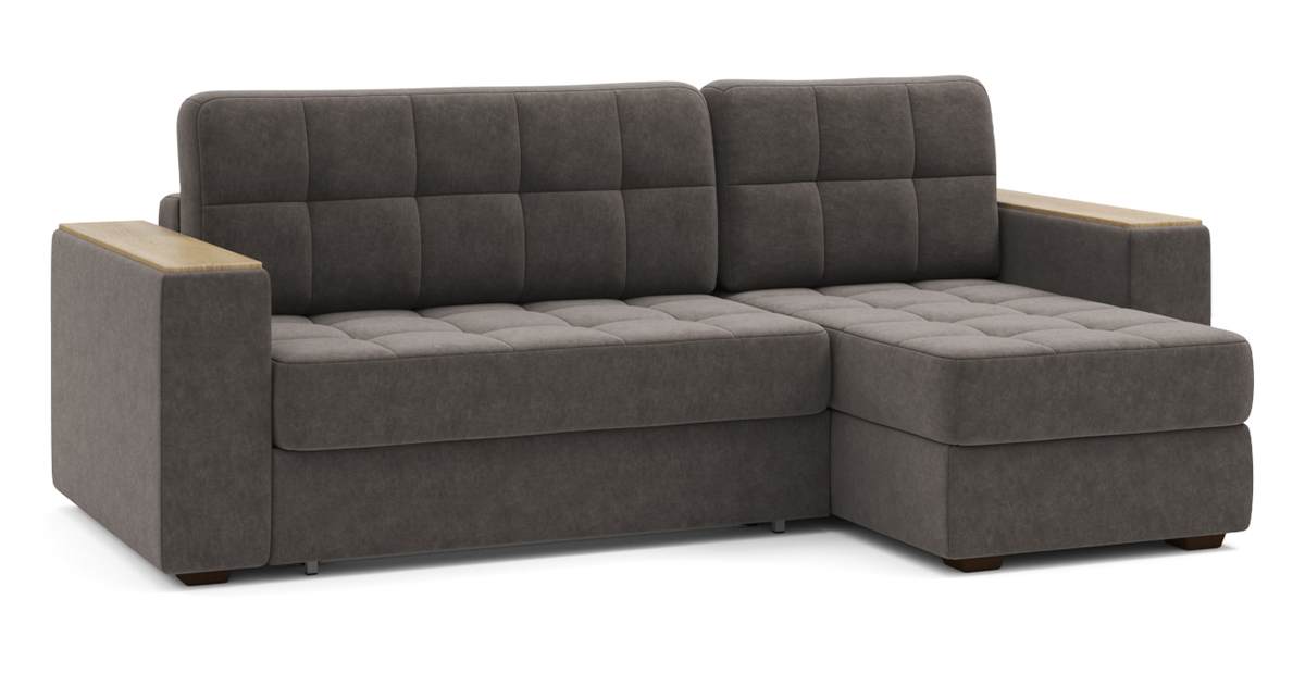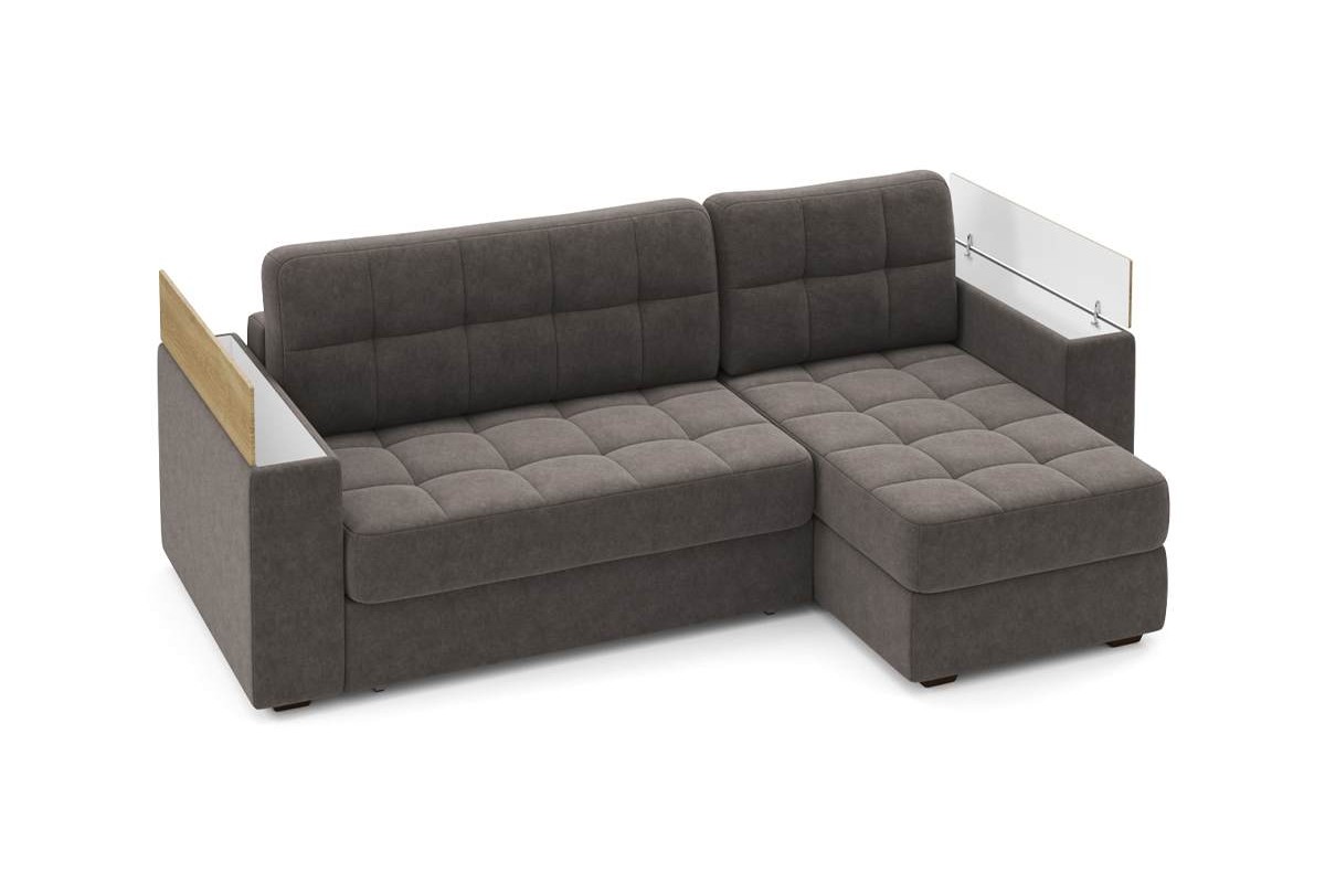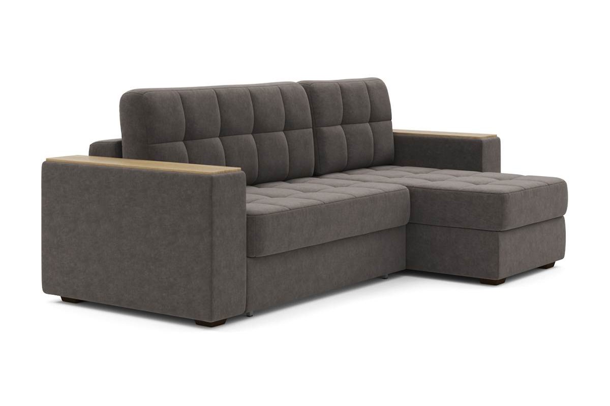 Угловой диван Гринвич NEXT 22 узкие подлокотники декор дуб каньон тик-так велюр коричневый 256х100х160 металлокаркас артикул 10478379