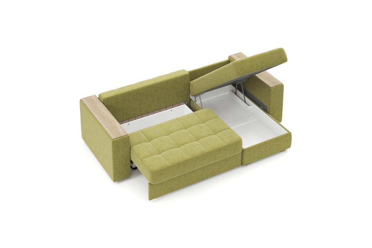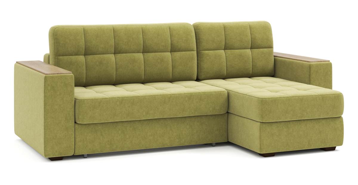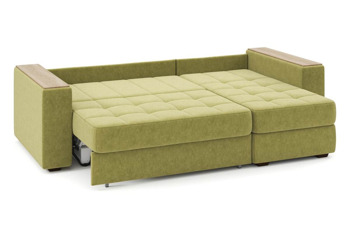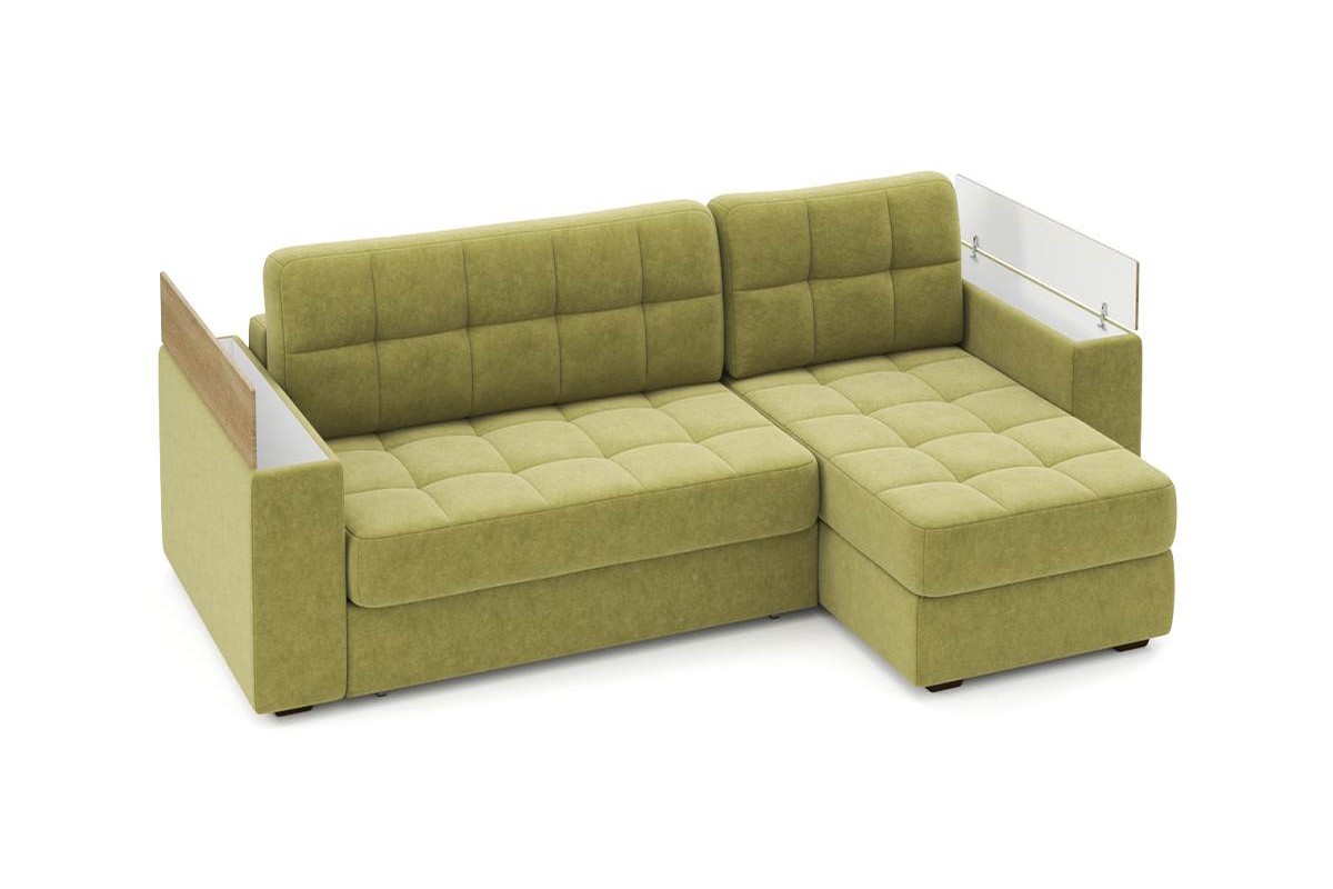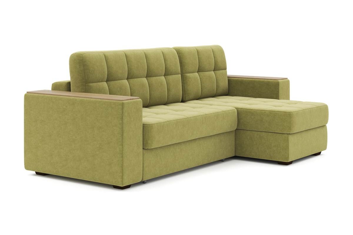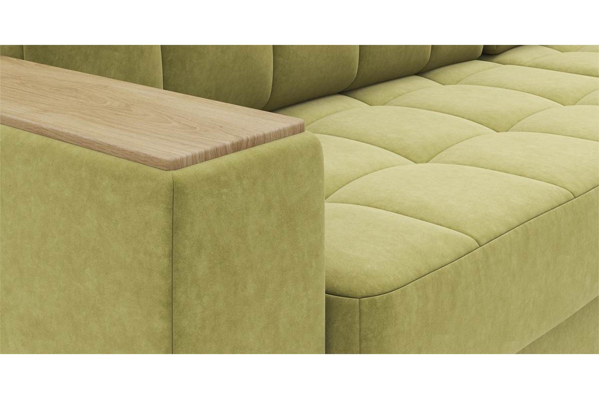 Угловой диван Гринвич NEXT 22 узкие подлокотники декор дуб каньон тик-так велюр зеленый 256х100х160 металлокаркас артикул 10478382