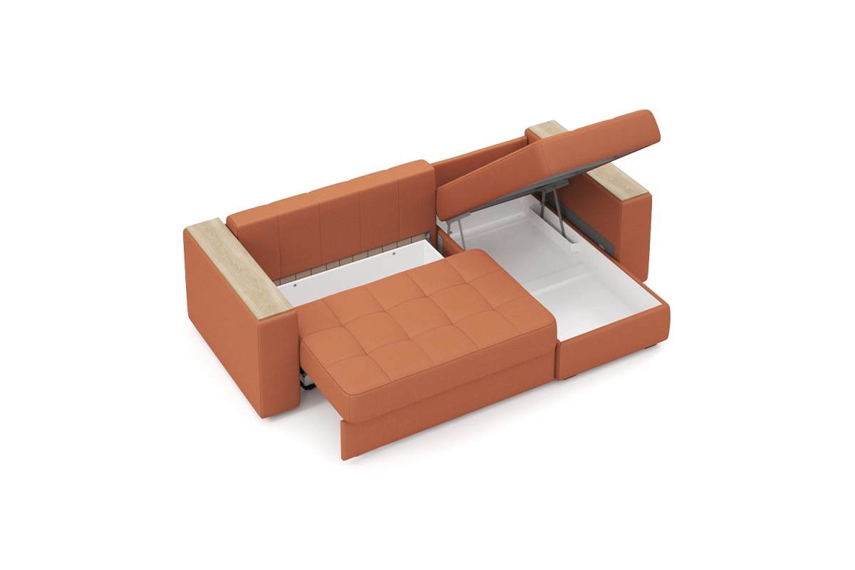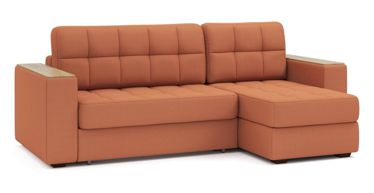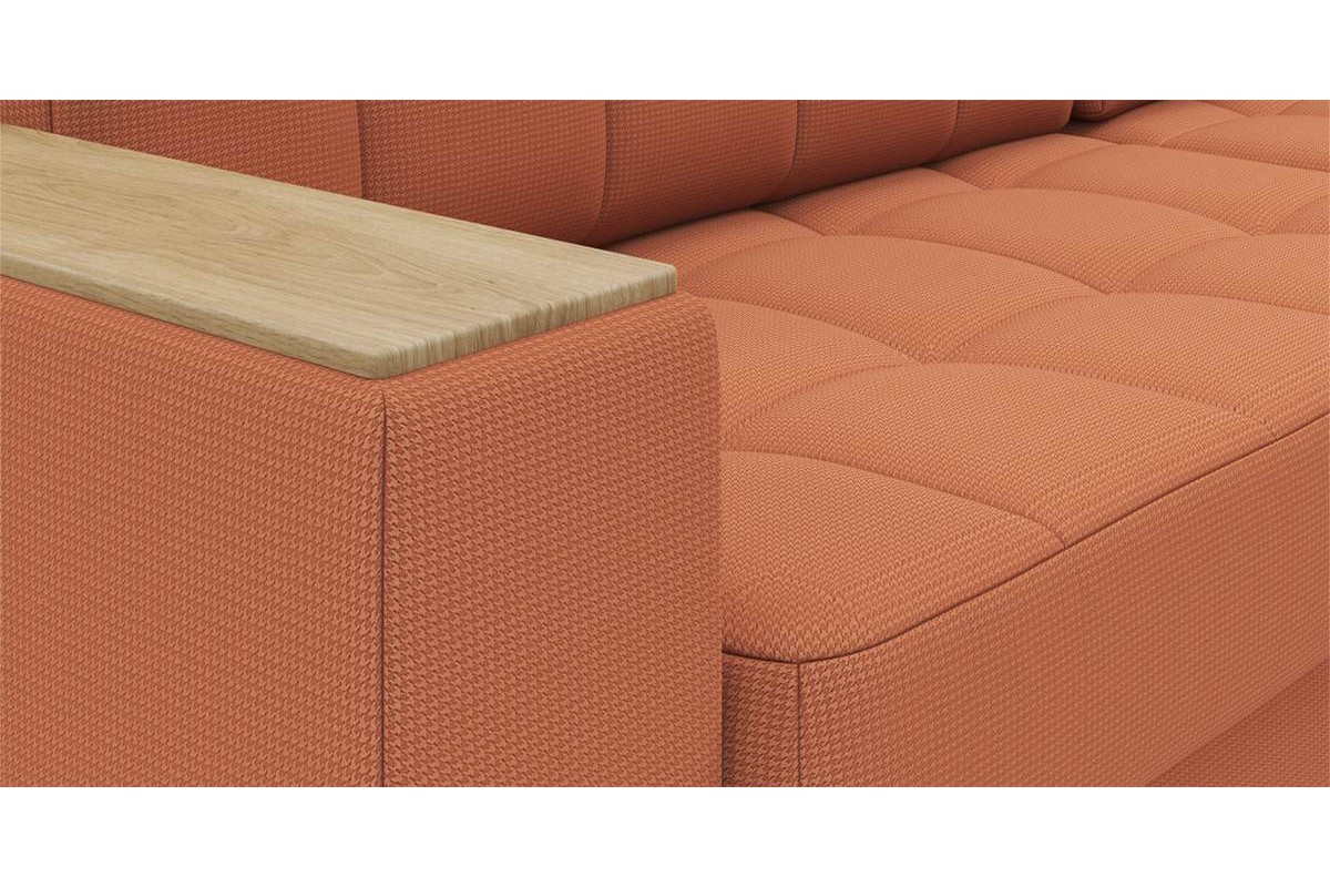 Угловой диван Гринвич NEXT 22 узкие подлокотники декор дуб каньон тик-так велюр оранжевый 256х100х160 металлокаркас артикул 10478356