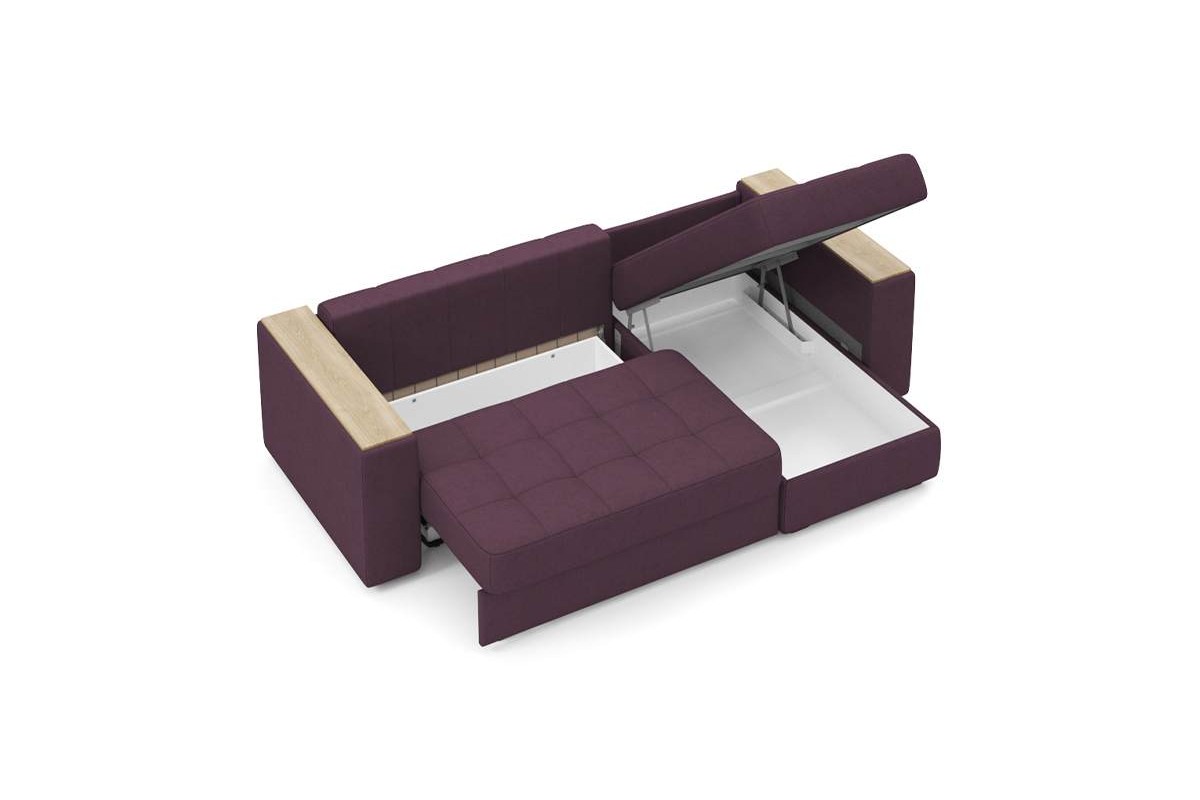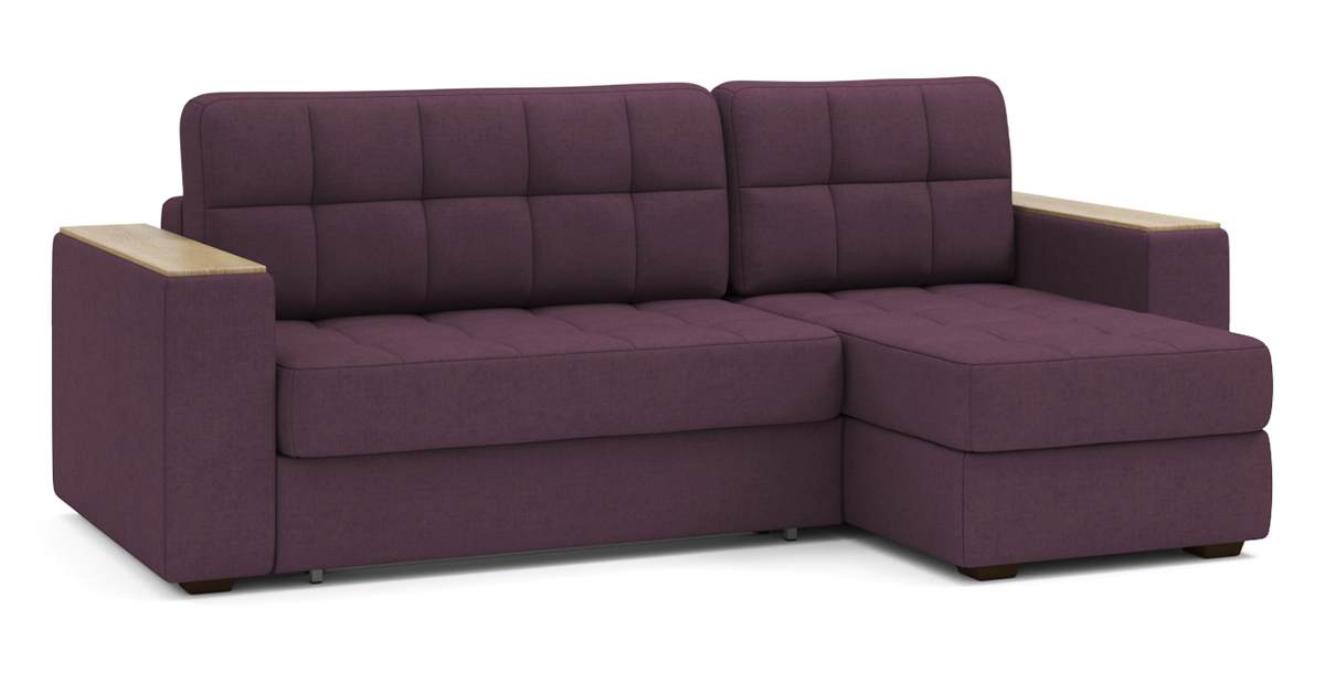Угловой диван Гринвич NEXT 22 узкие подлокотники декор дуб каньон тик-так велюр фиолетовый 256х100х160 металлокаркас артикул 10478384