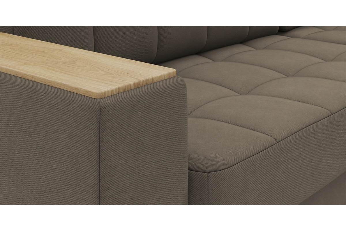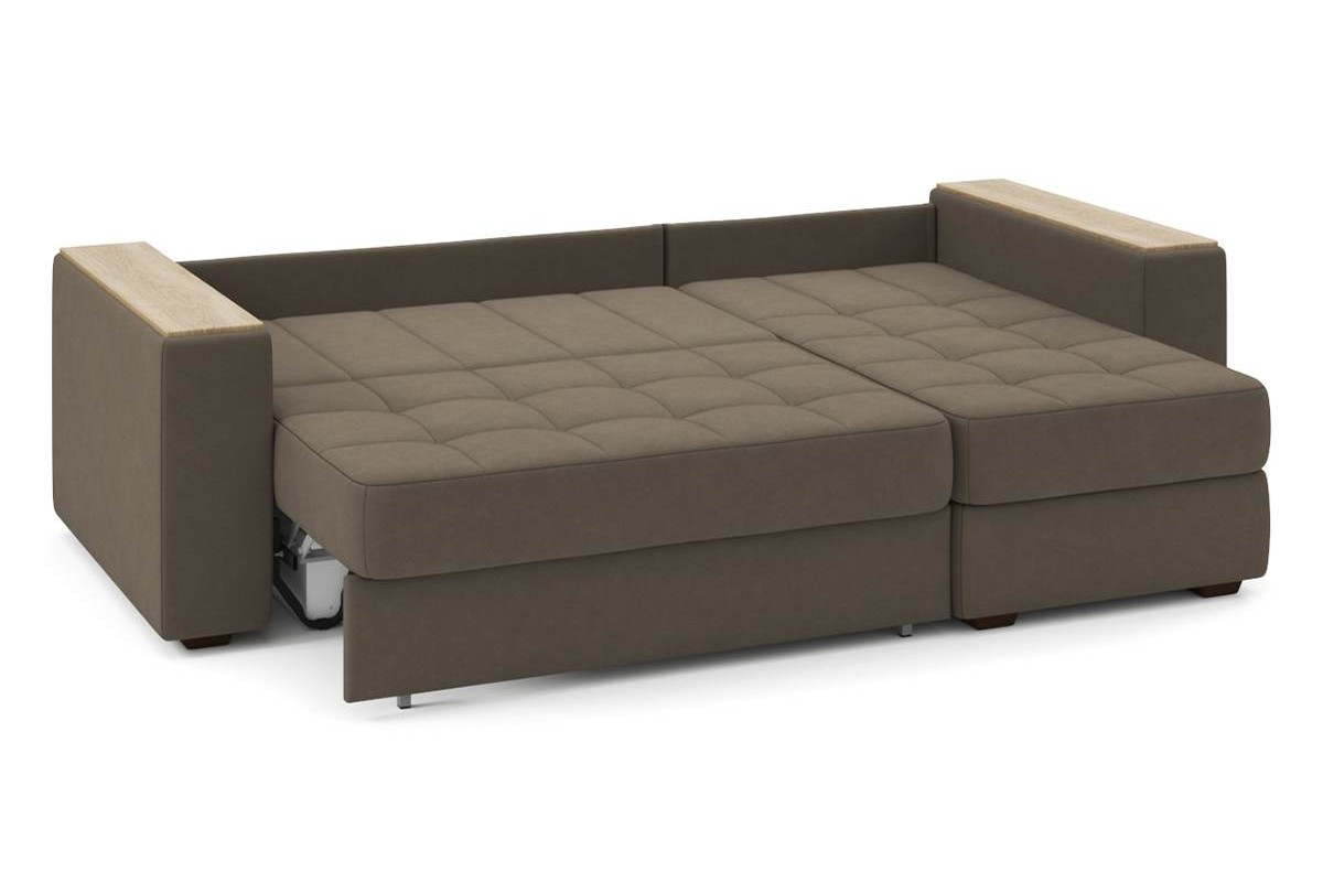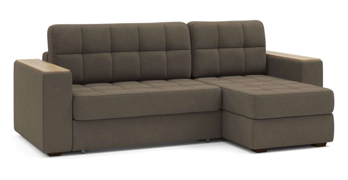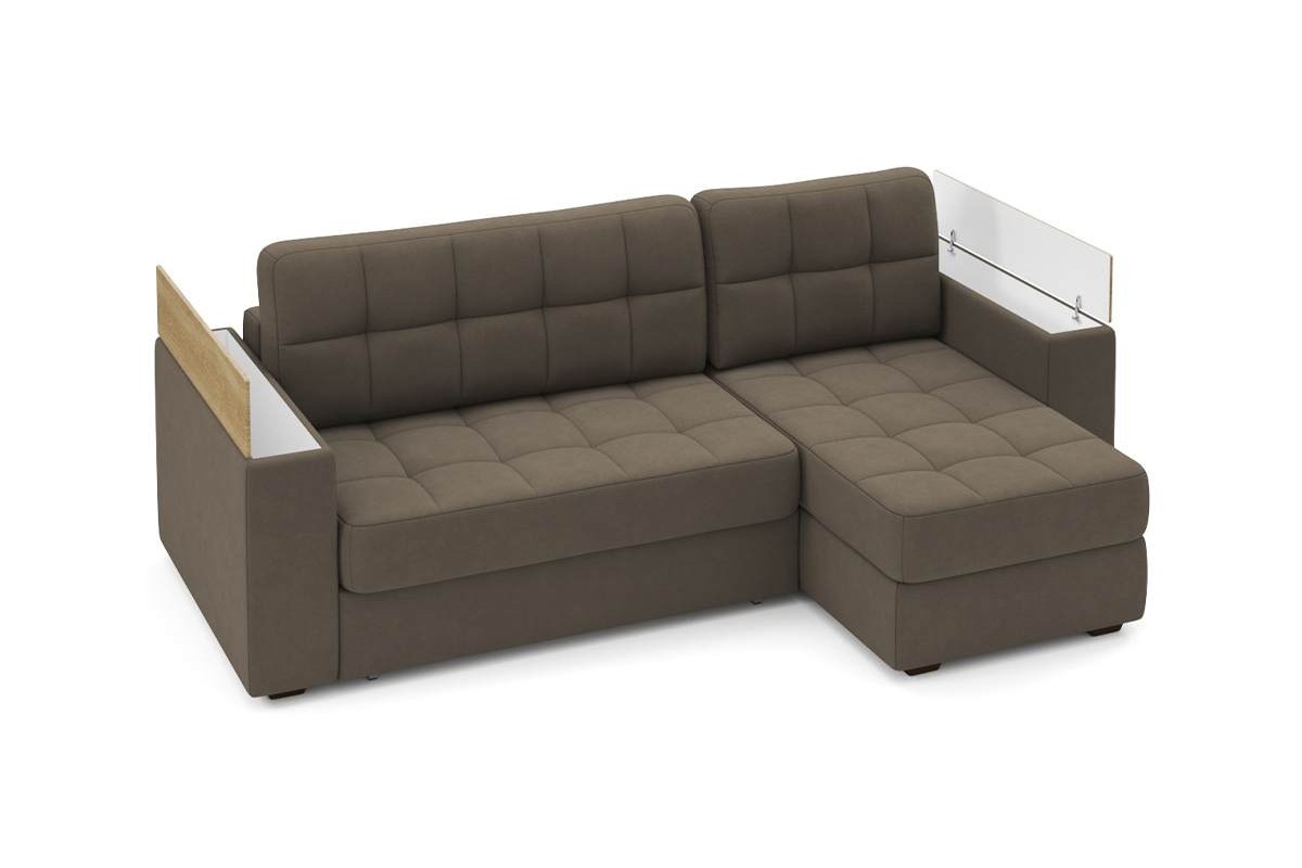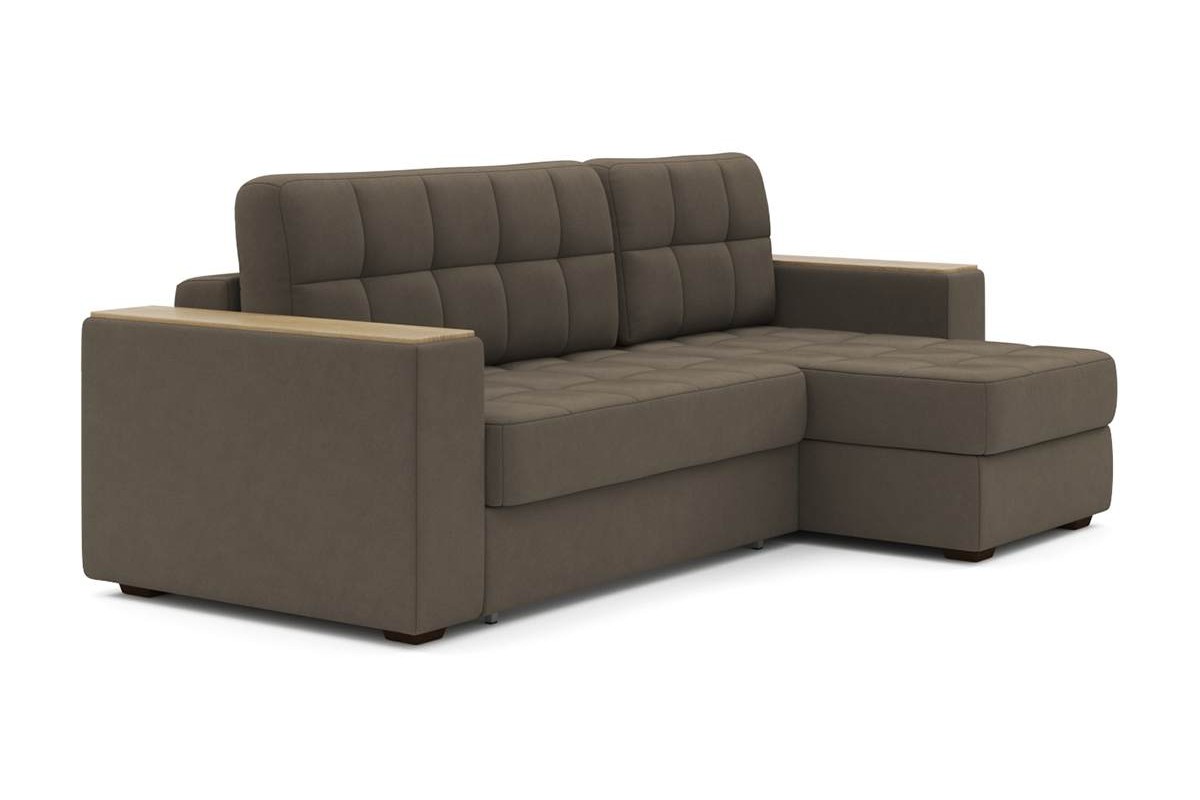 Угловой диван Гринвич NEXT 22 узкие подлокотники декор дуб каньон тик-так велюр коричневый 256х100х160 металлокаркас артикул 10478434