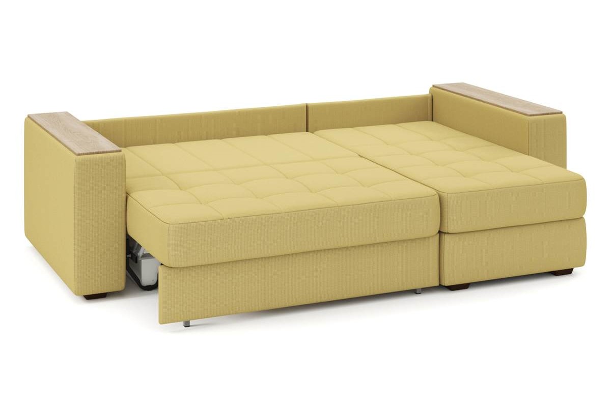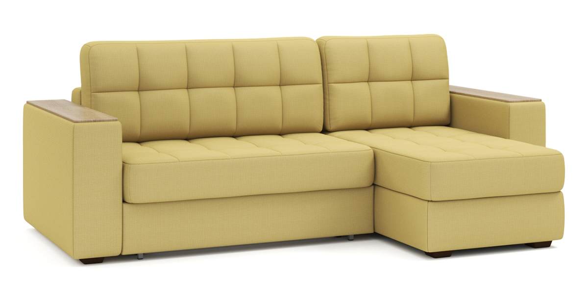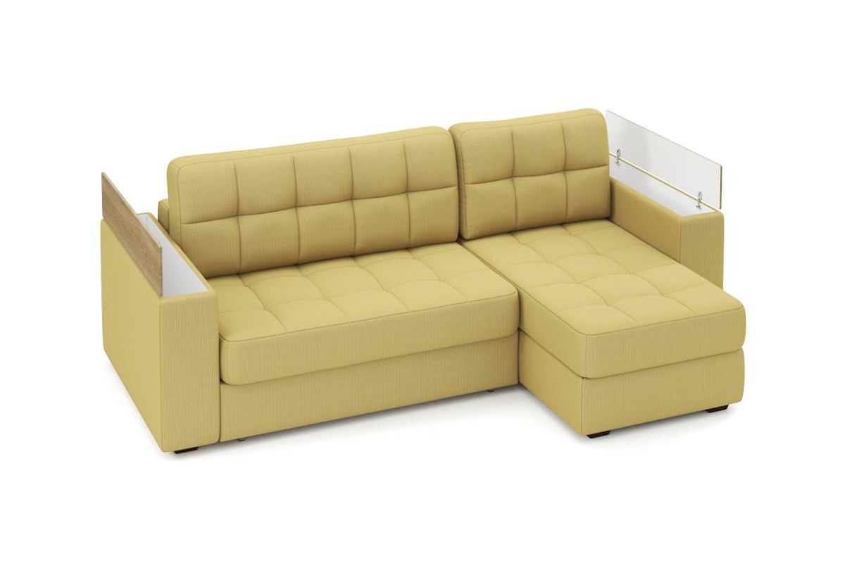 Угловой диван Гринвич NEXT 22 узкие подлокотники декор дуб каньон тик-так велюр желтый 256х100х160 металлокаркас артикул 10478357