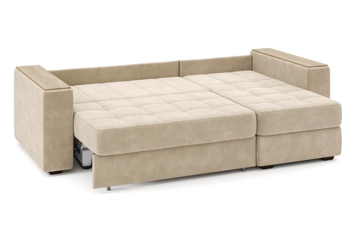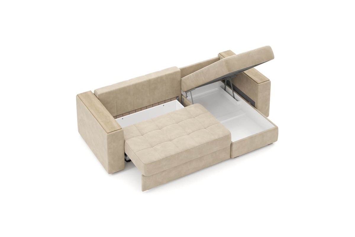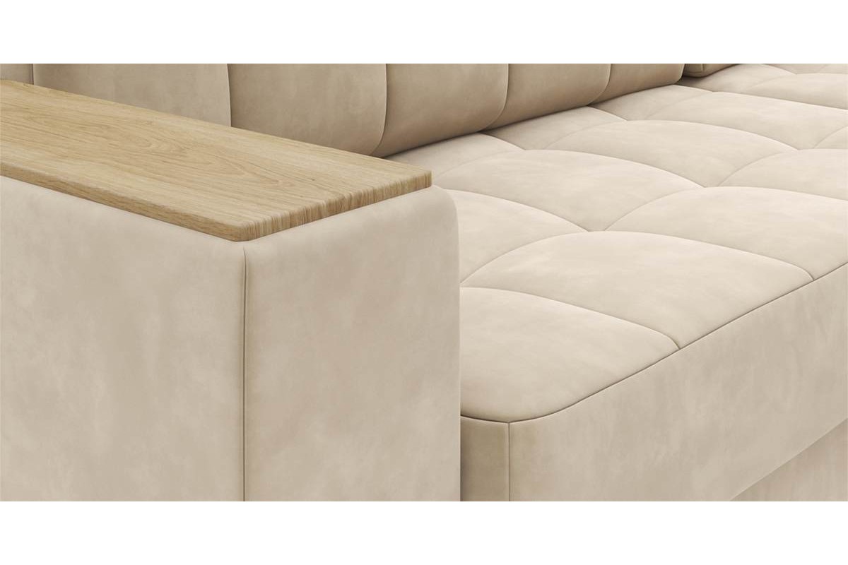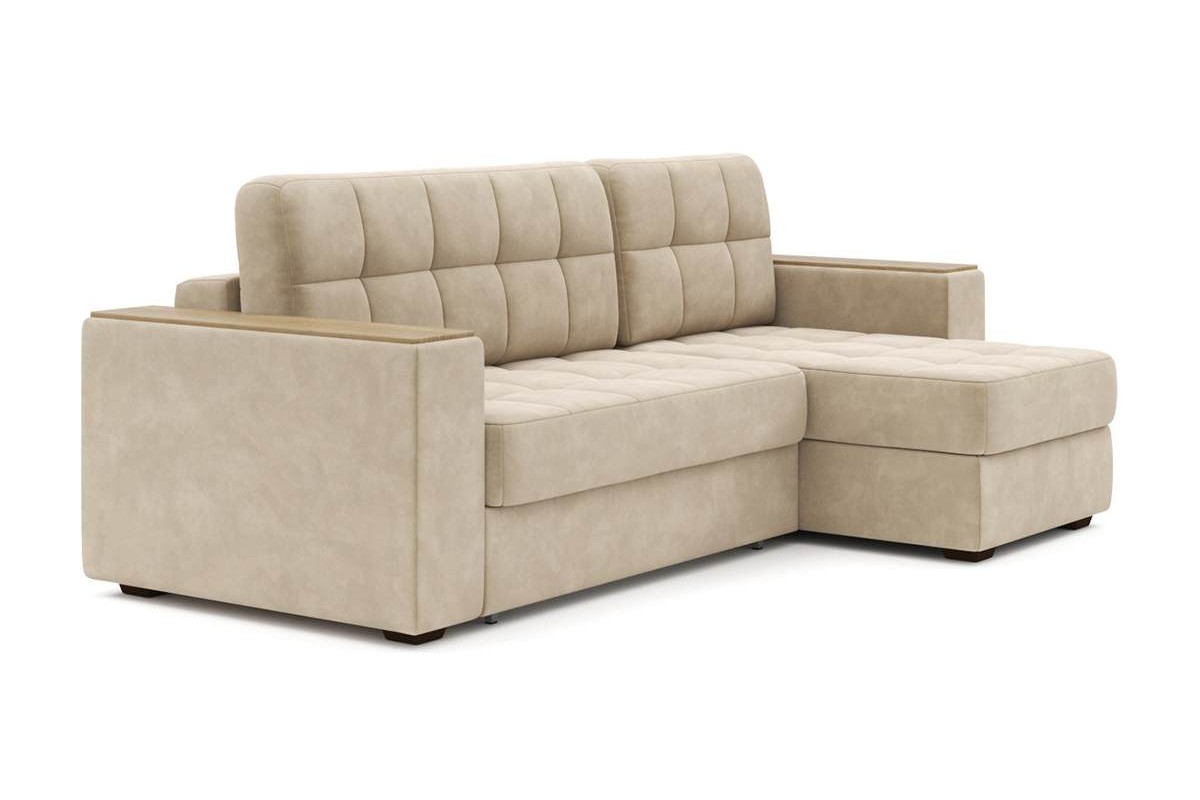Угловой диван Гринвич NEXT 22 узкие подлокотники декор дуб каньон тик-так искусственная замша бежевый 256х100х160 металлокаркас артикул 10478440