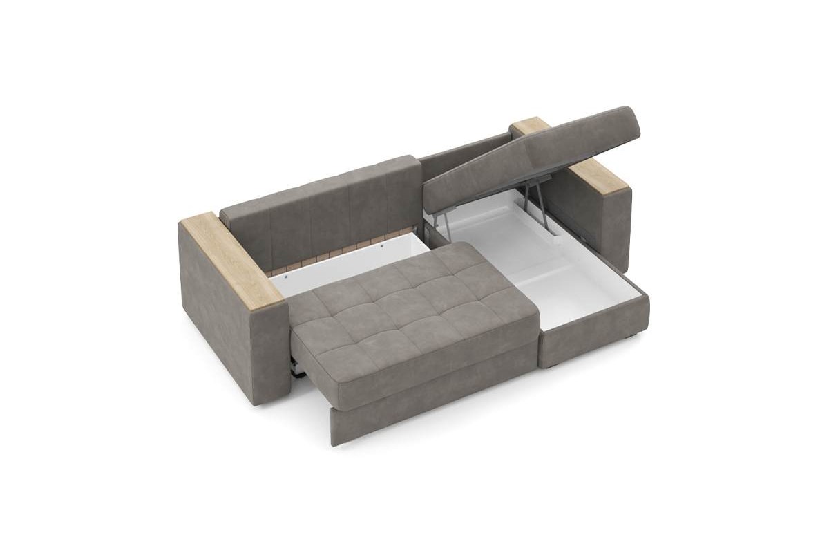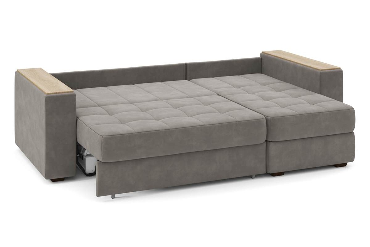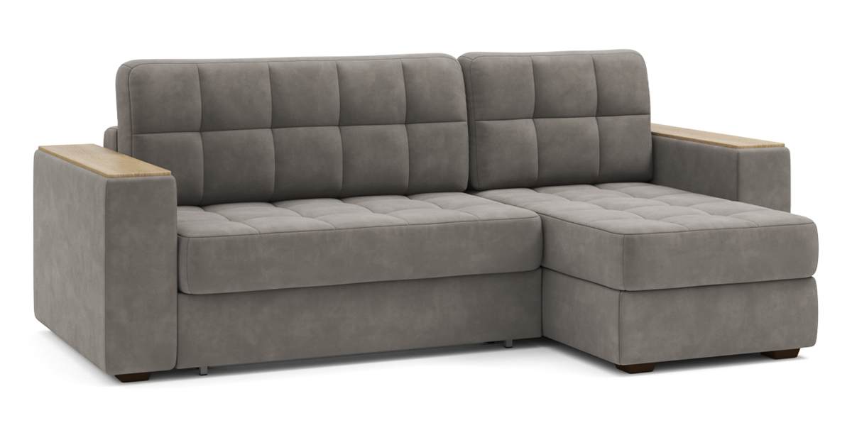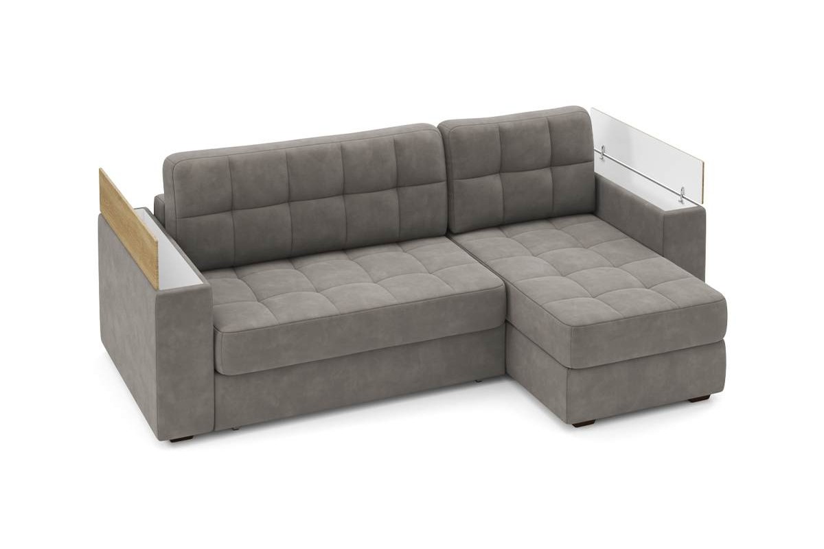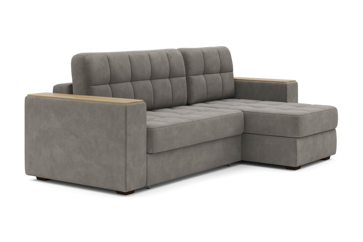 Угловой диван Гринвич NEXT 22 узкие подлокотники декор дуб каньон тик-так искусственная замша коричневый 256х100х160 металлокаркас артикул 10478441