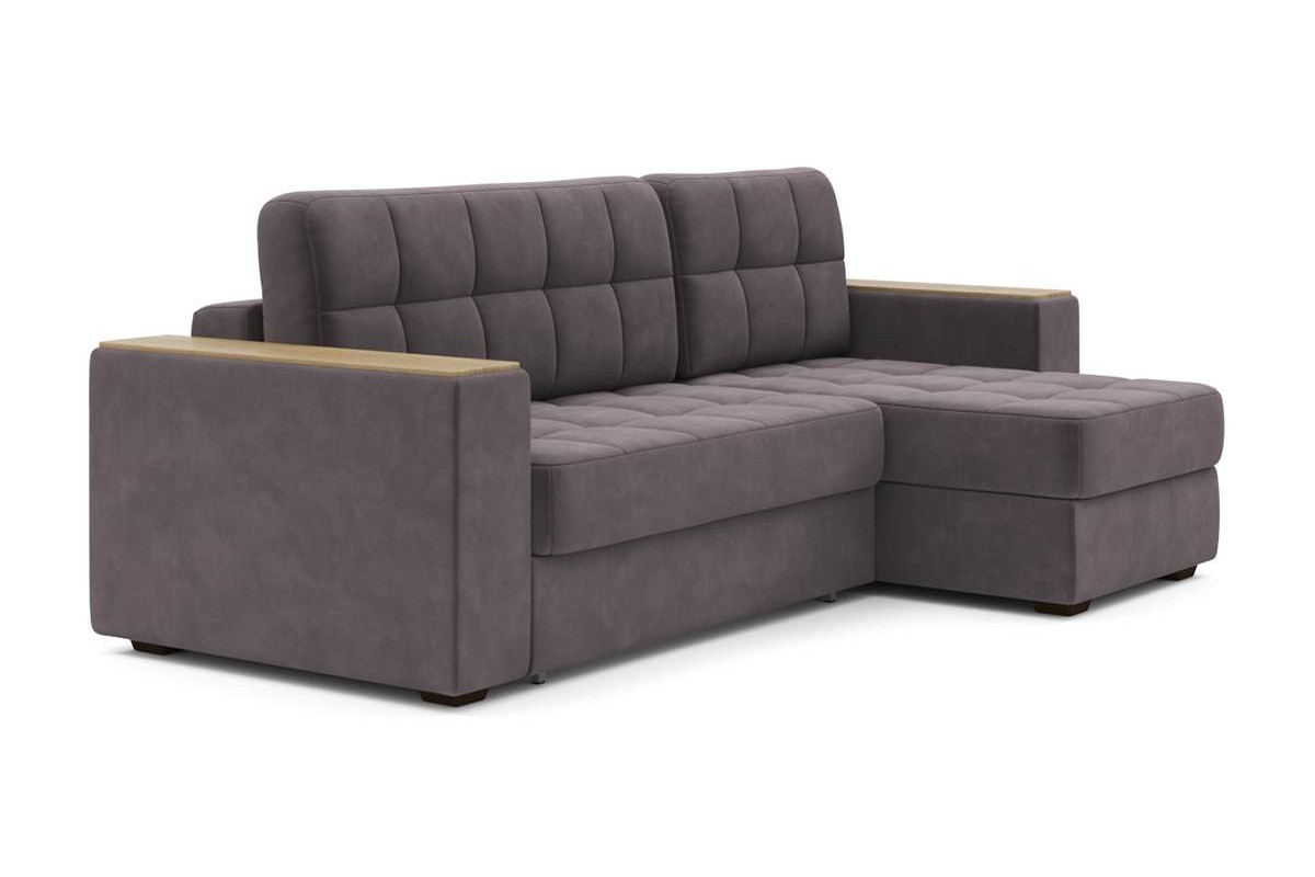 Угловой диван Гринвич NEXT 22 узкие подлокотники декор дуб каньон тик-так искусственная замша серый 256х100х160 металлокаркас артикул 10478442