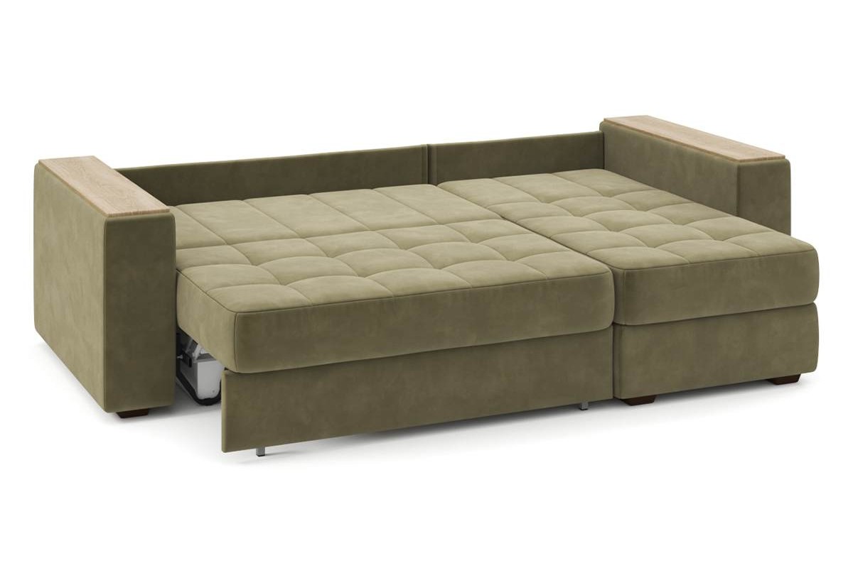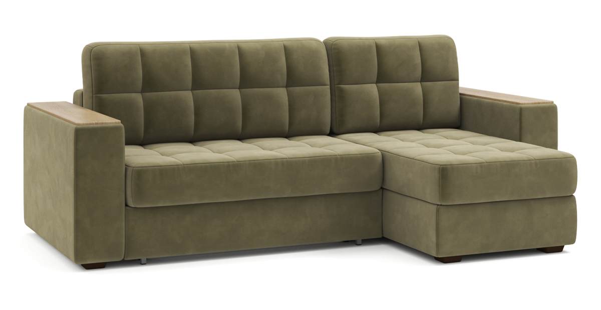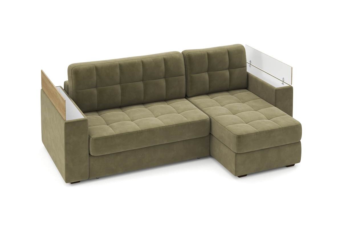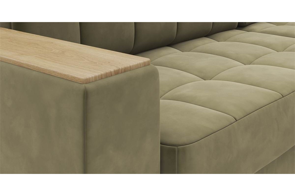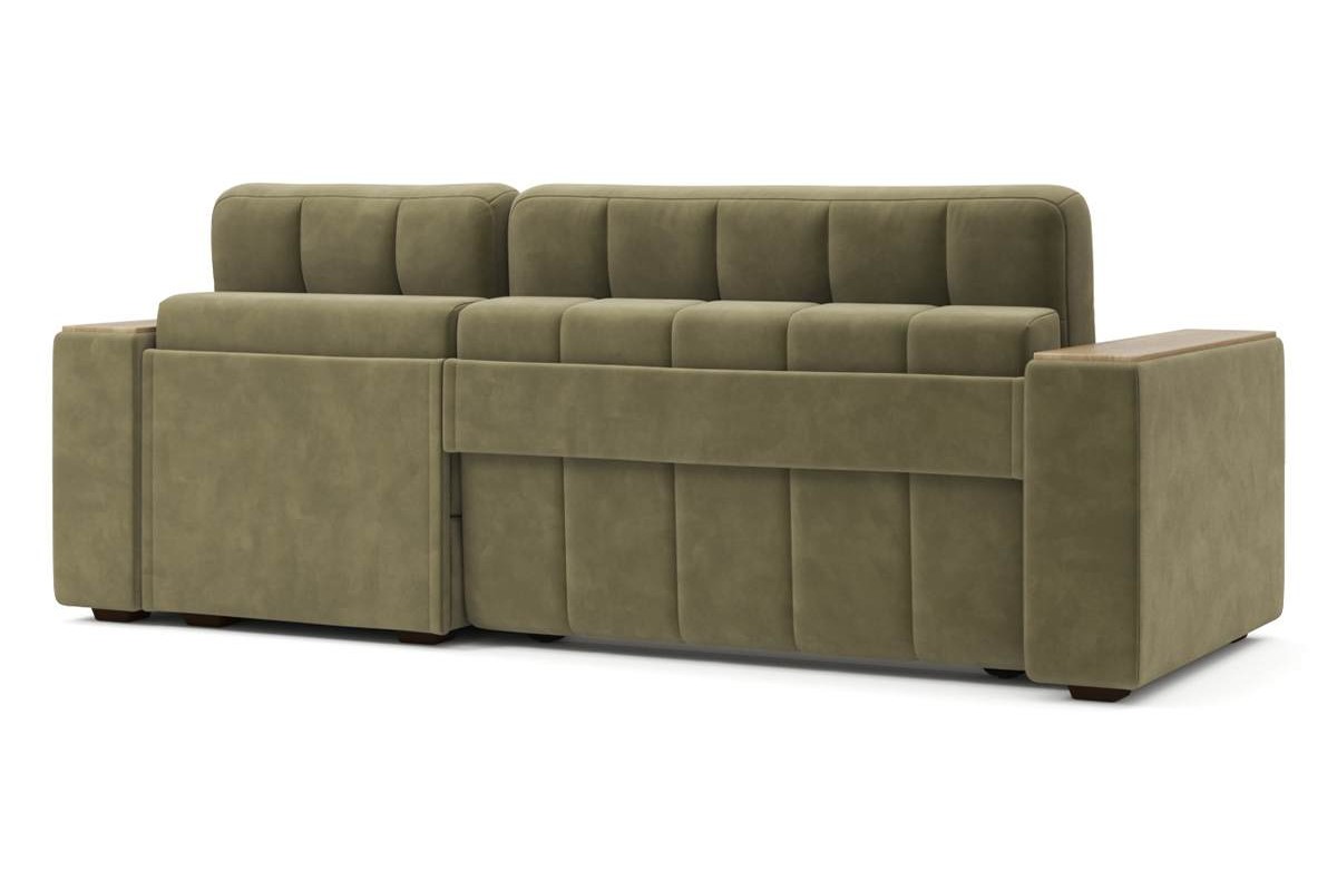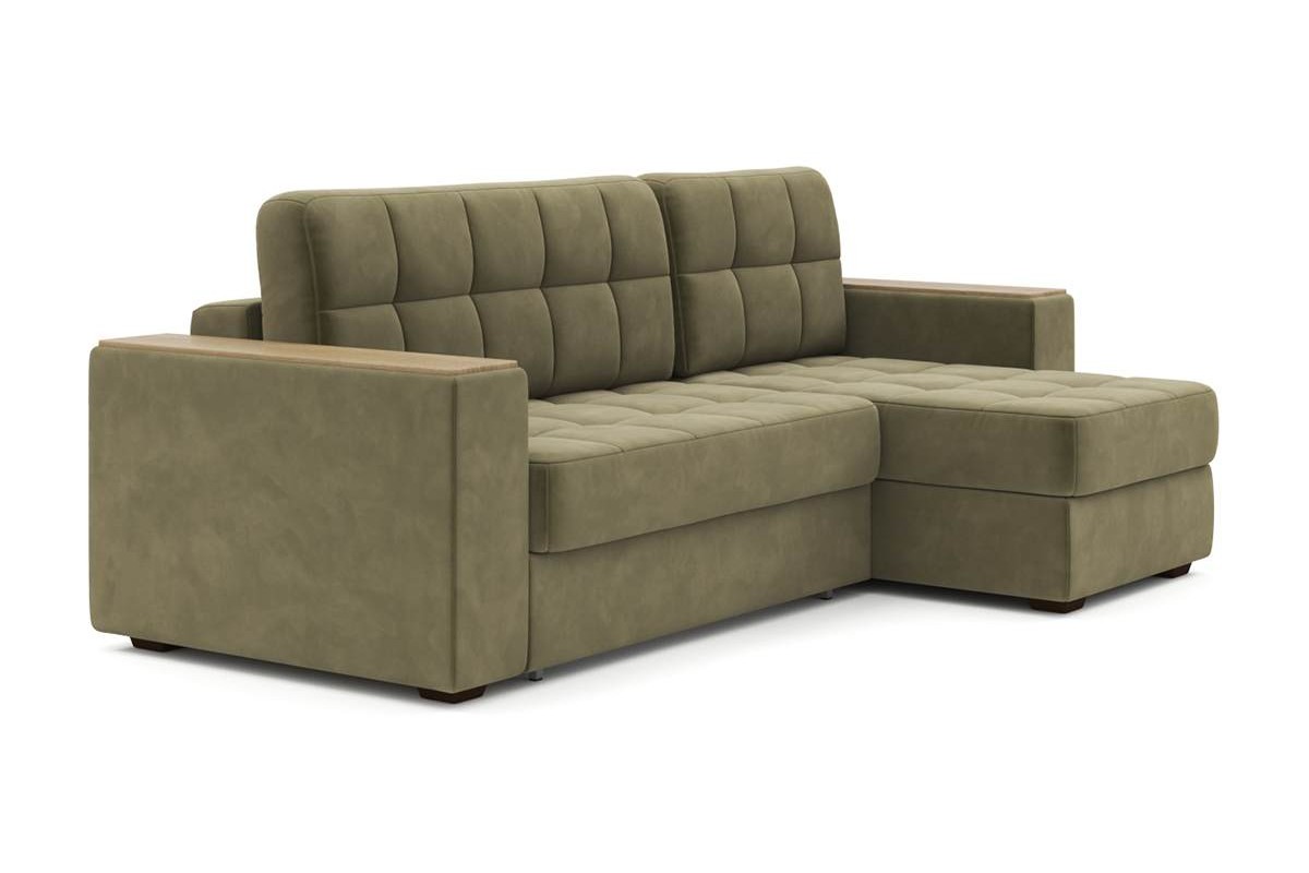 Угловой диван Гринвич NEXT 22 узкие подлокотники декор дуб каньон тик-так искусственная замша зеленый 256х100х160 металлокаркас артикул 10478443