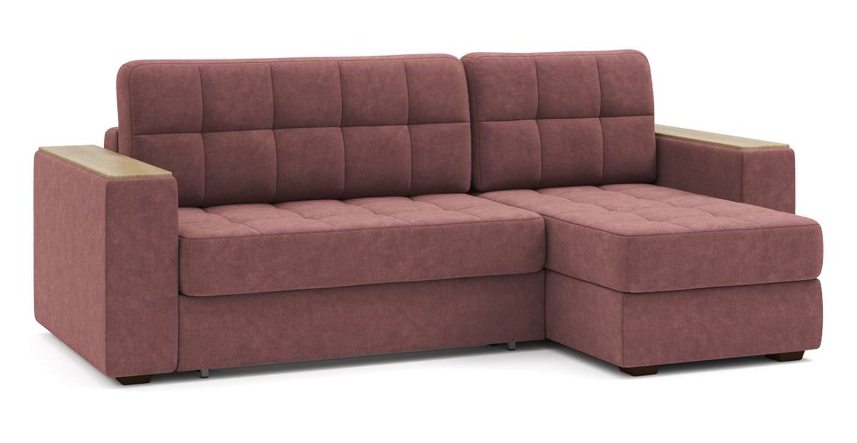 Угловой диван Гринвич NEXT 22 узкие подлокотники декор дуб каньон тик-так велюр красный 256х100х160 металлокаркас артикул 10478446