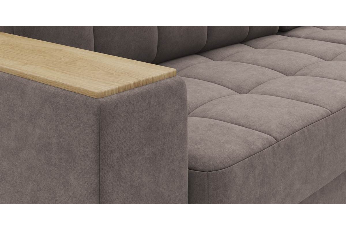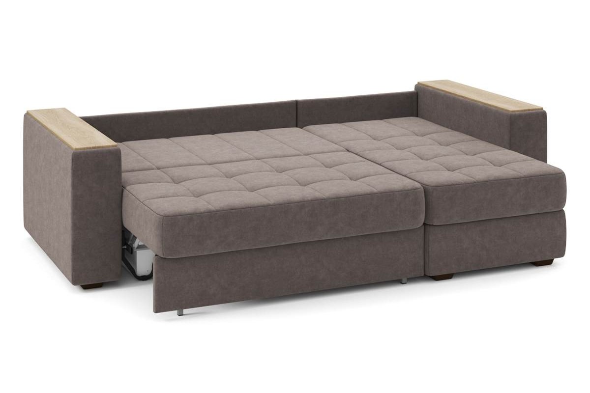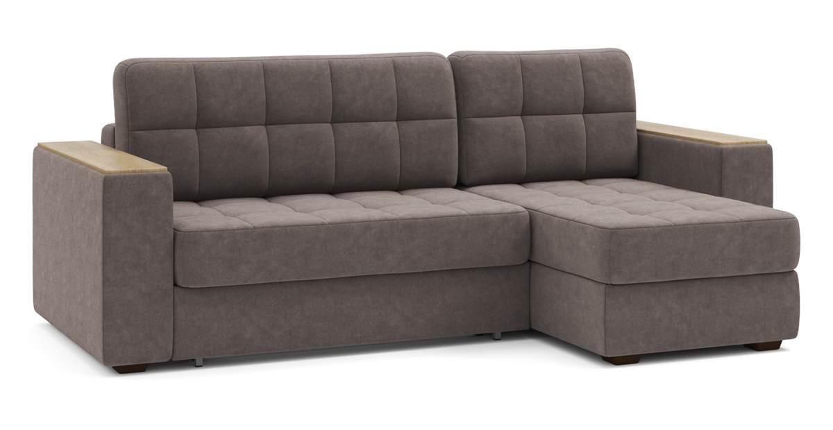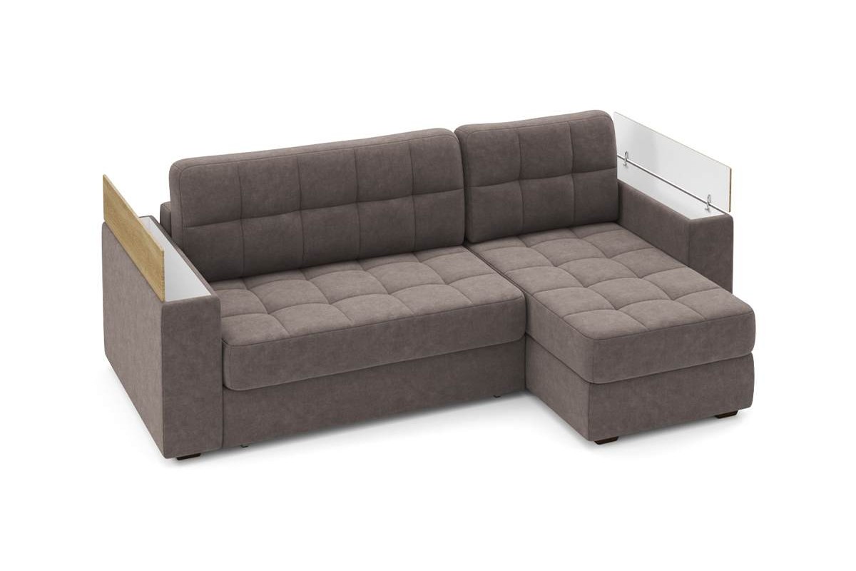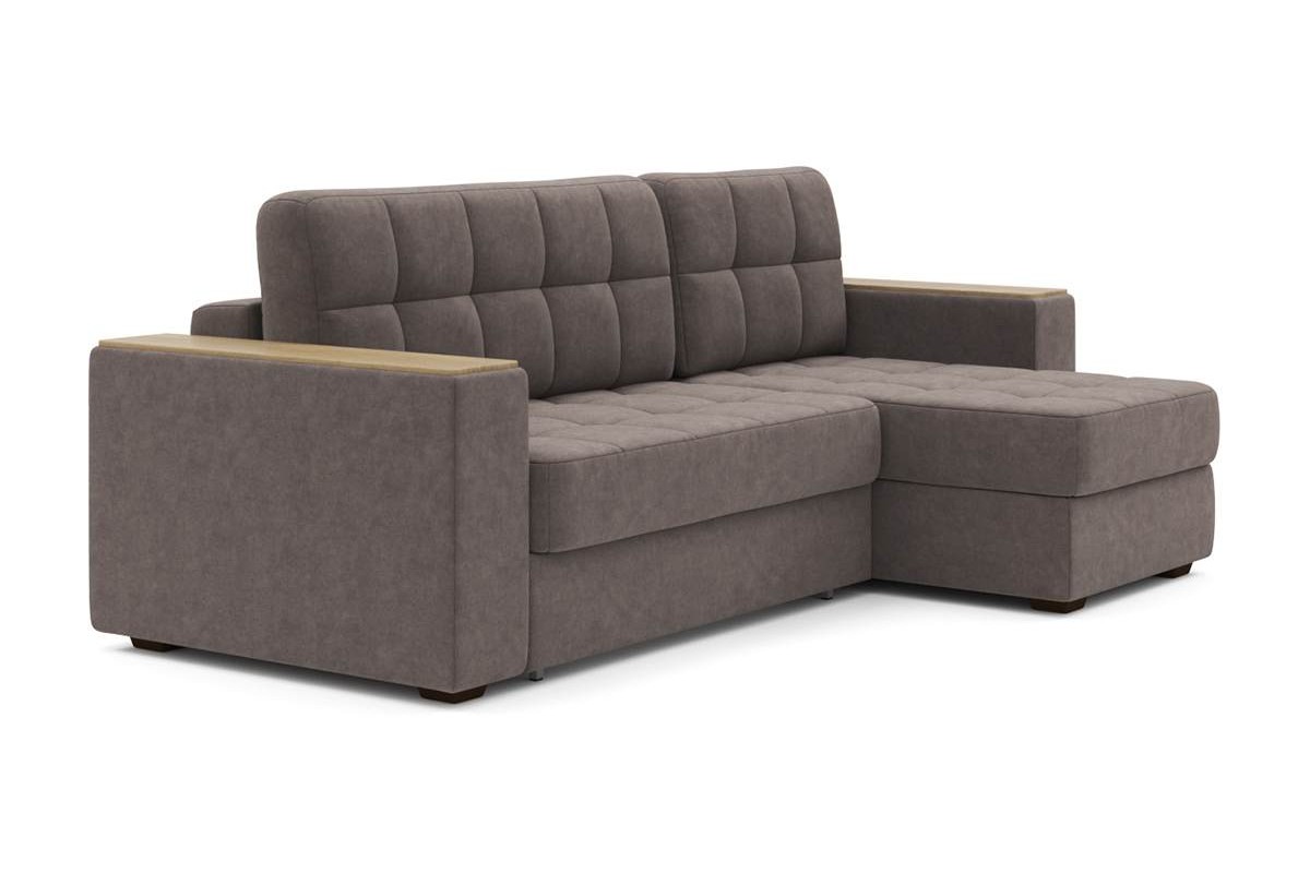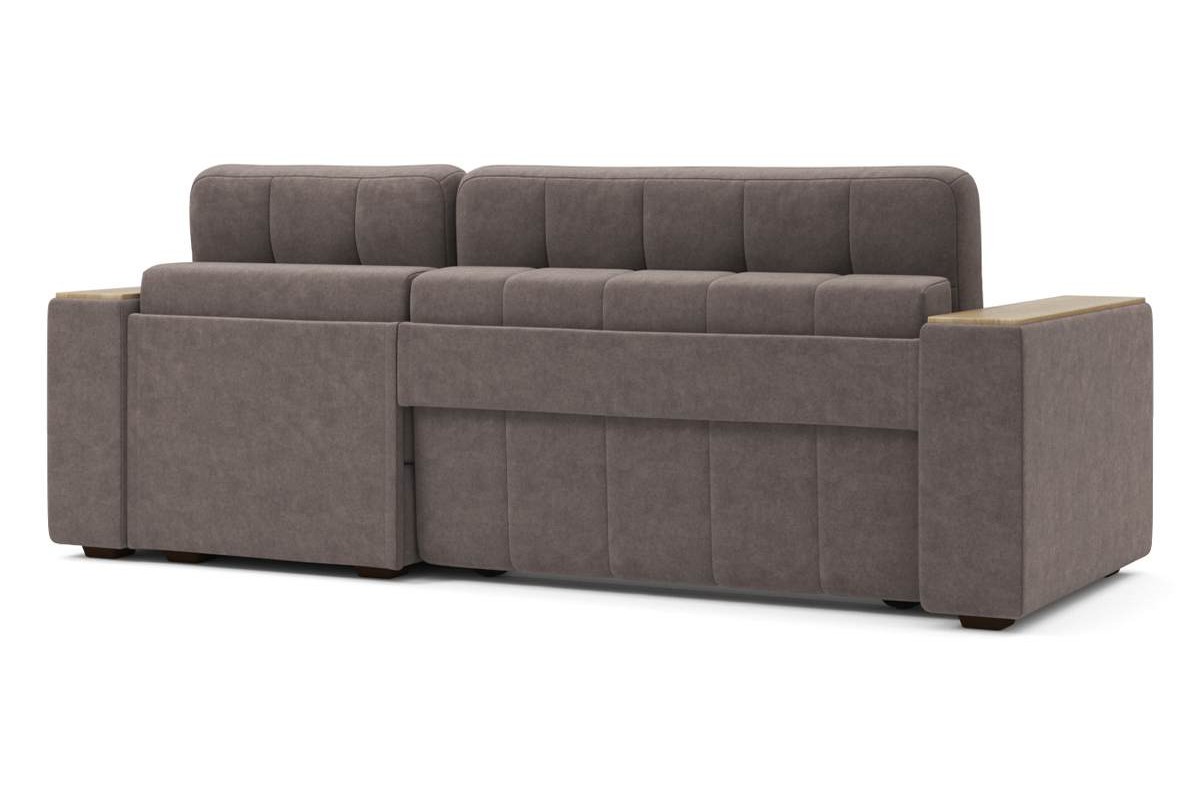 Угловой диван Гринвич NEXT 22 узкие подлокотники декор дуб каньон тик-так велюр коричневый 256х100х160 металлокаркас артикул 10478450