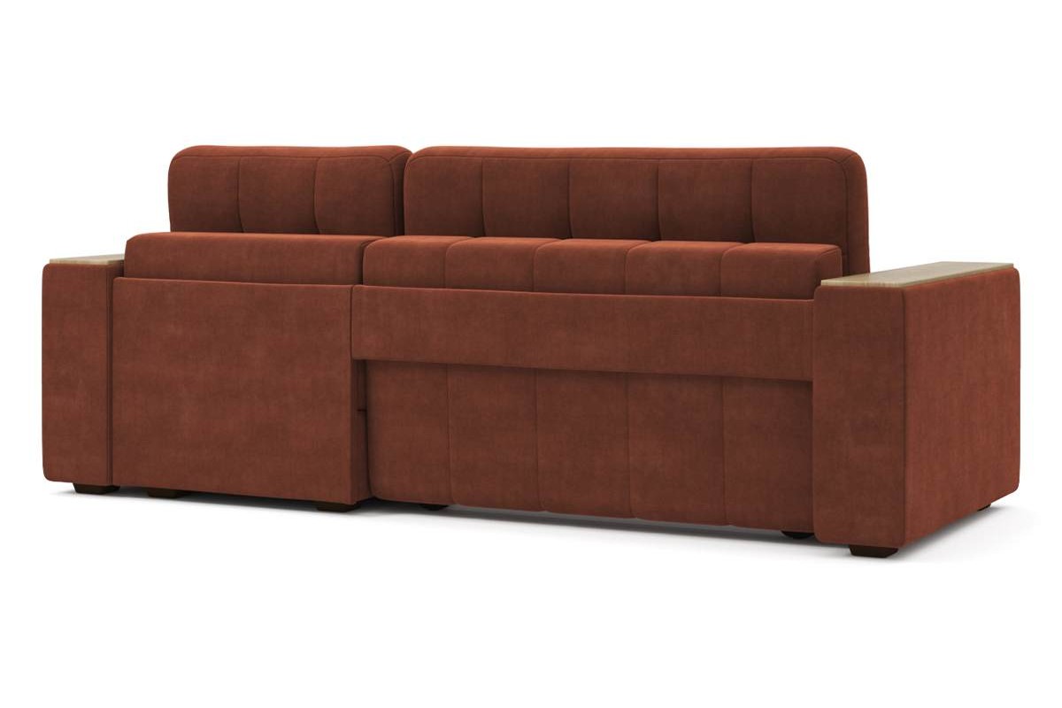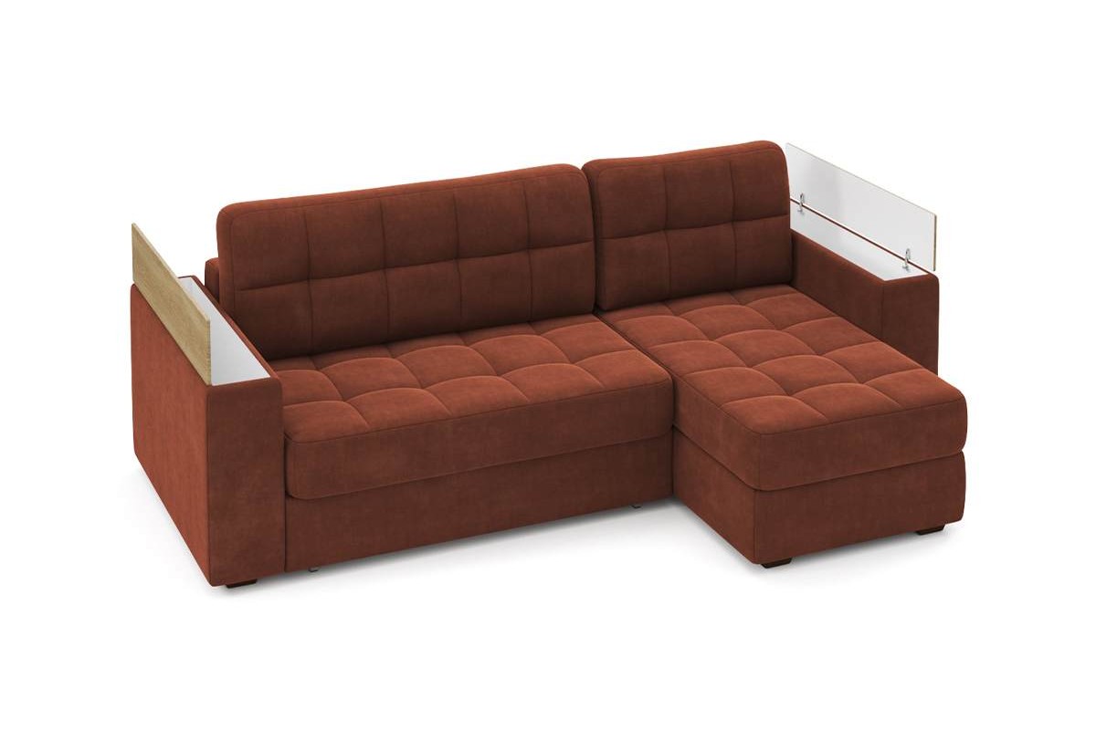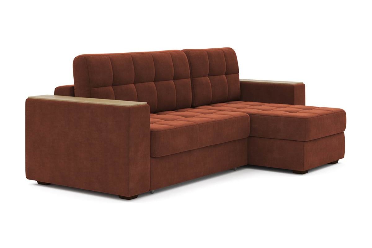 Угловой диван Гринвич NEXT 22 узкие подлокотники декор дуб каньон тик-так велюр красный 256х100х160 металлокаркас артикул 10478451