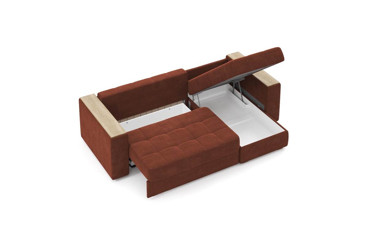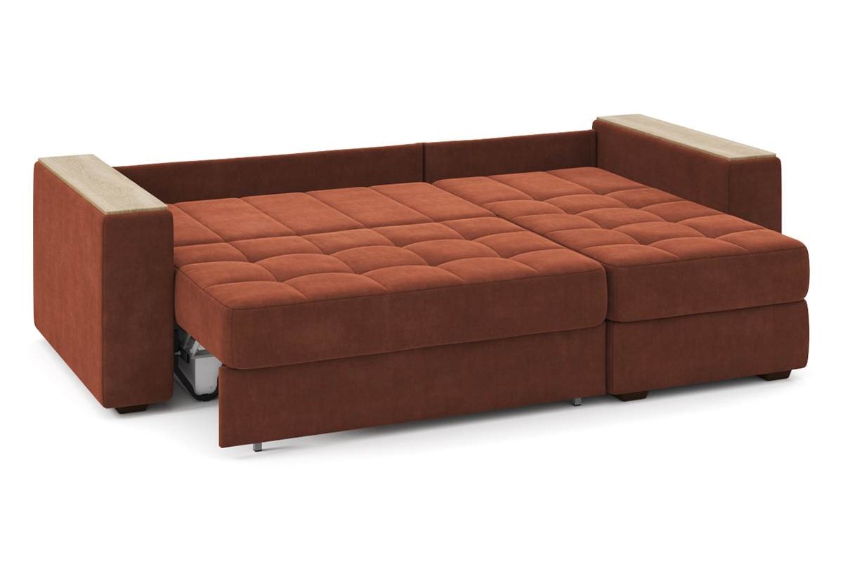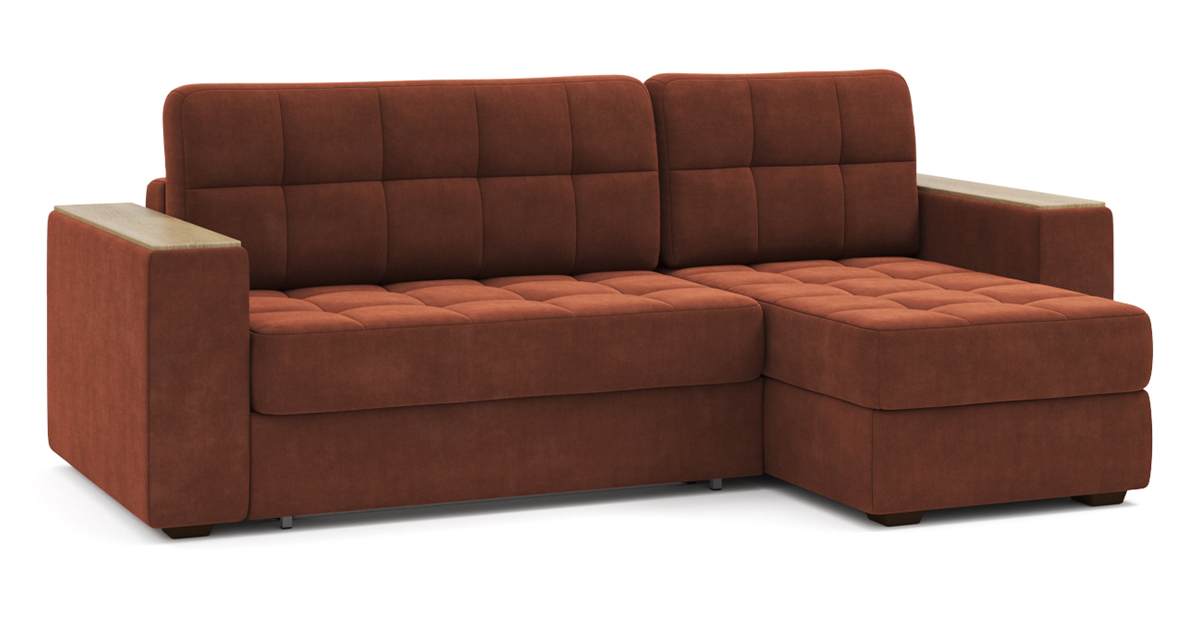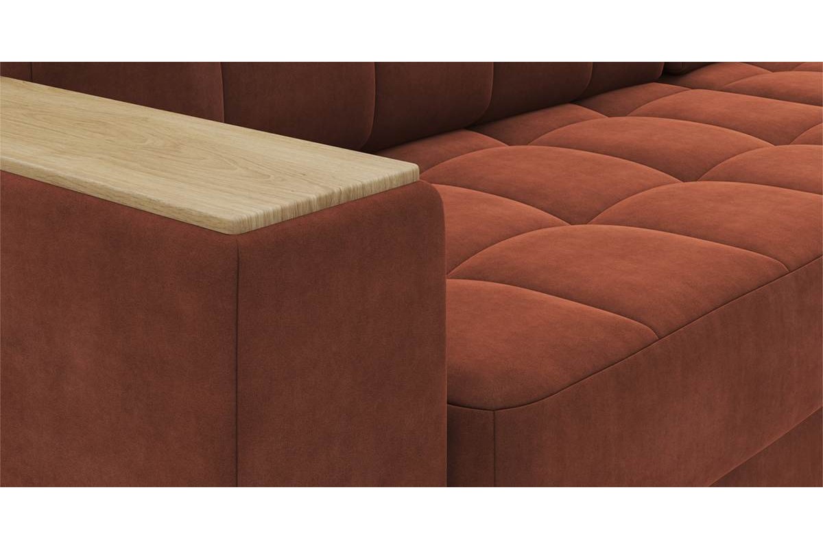 Угловой диван Гринвич NEXT 22 узкие подлокотники декор дуб каньон тик-так велюр красный 256х100х160 металлокаркас артикул 10478451