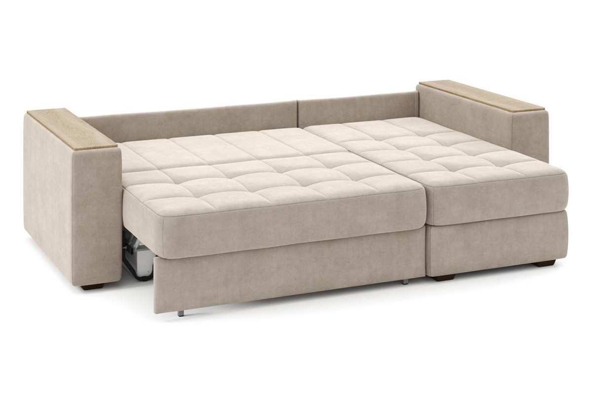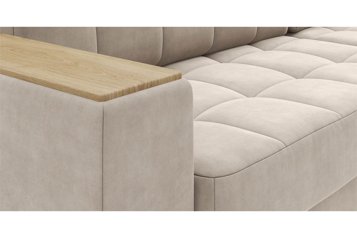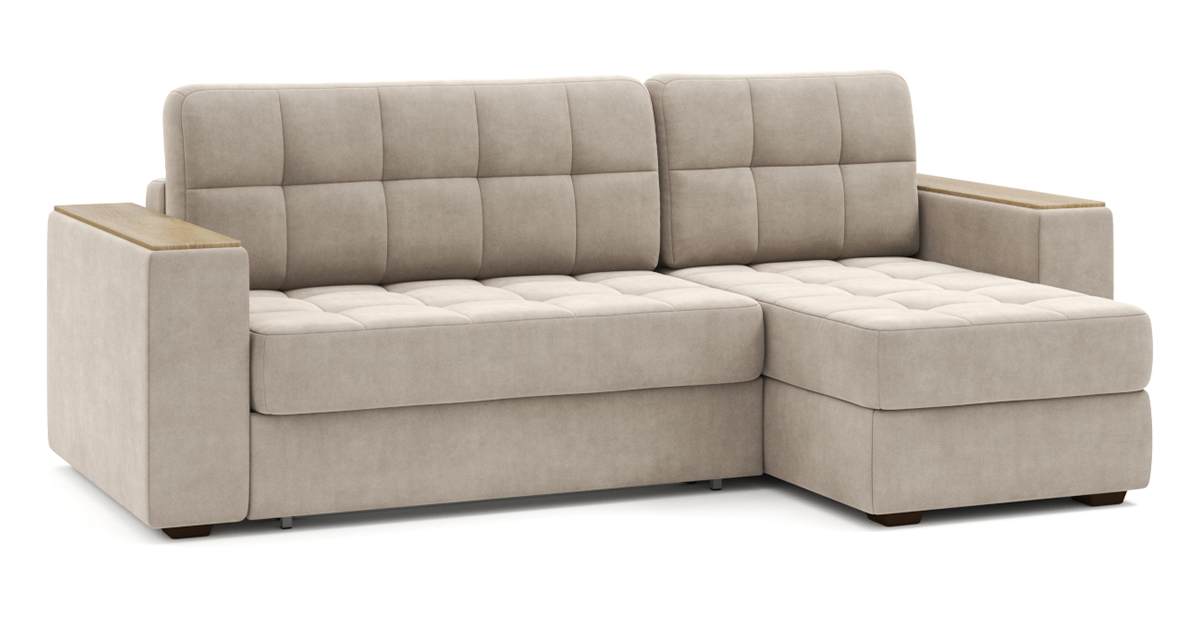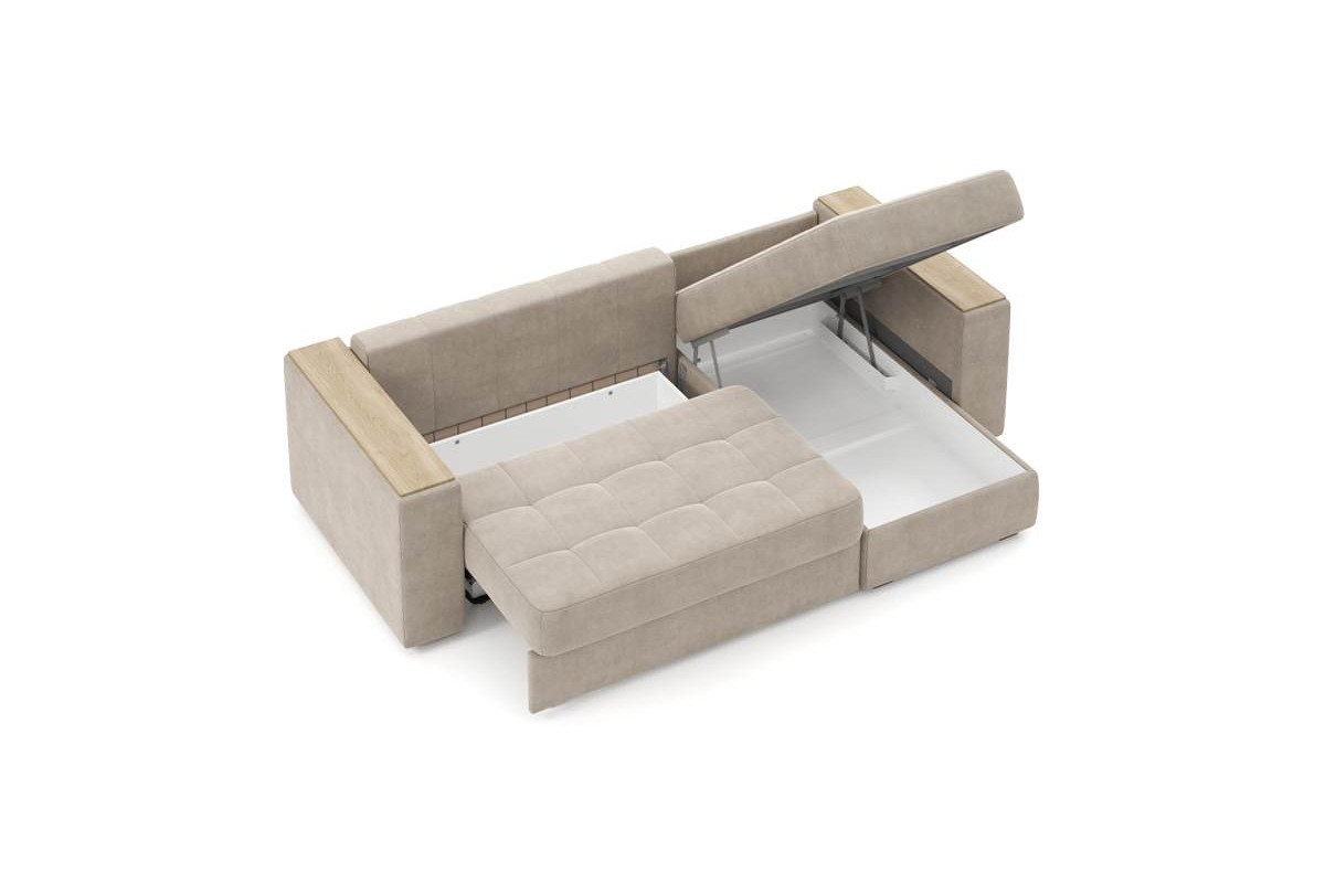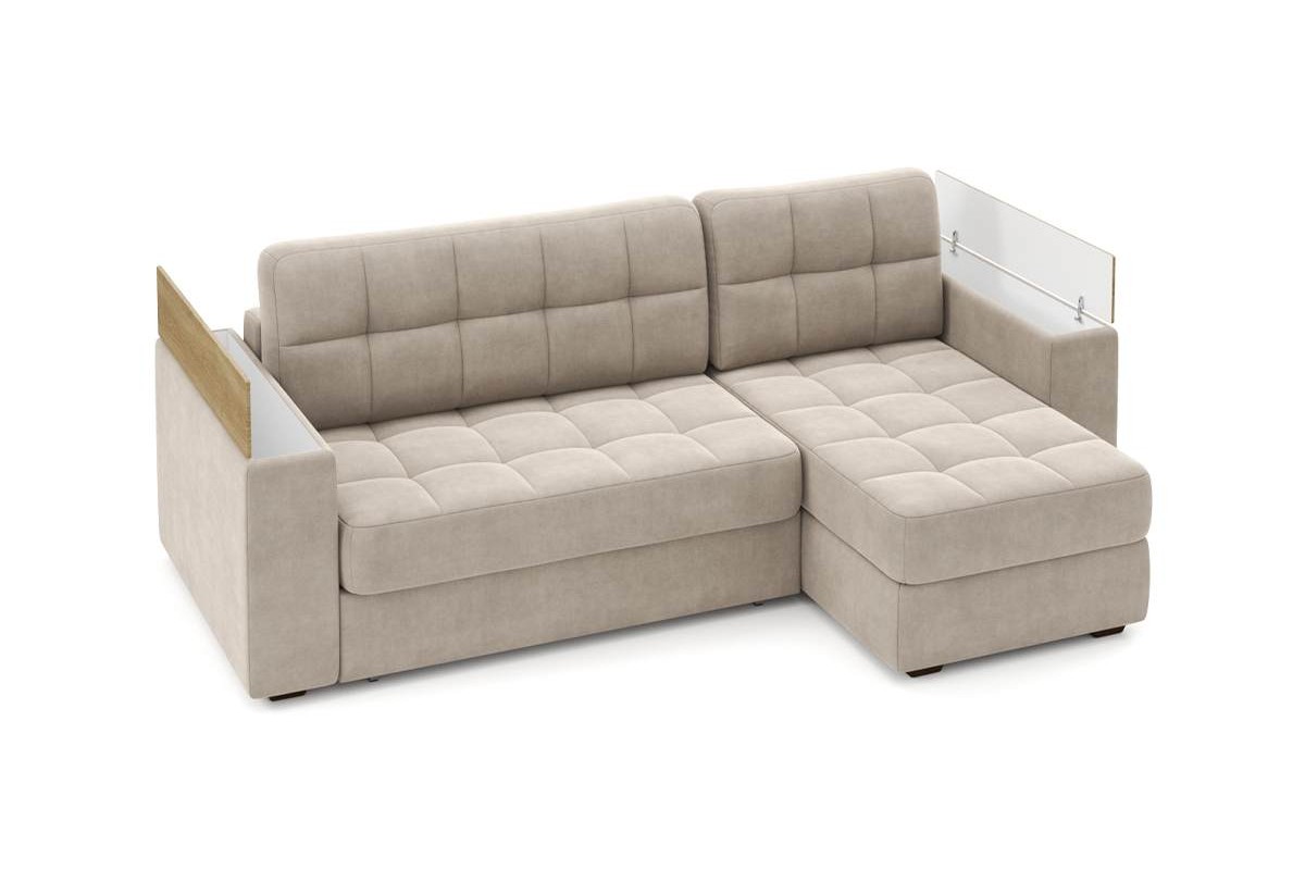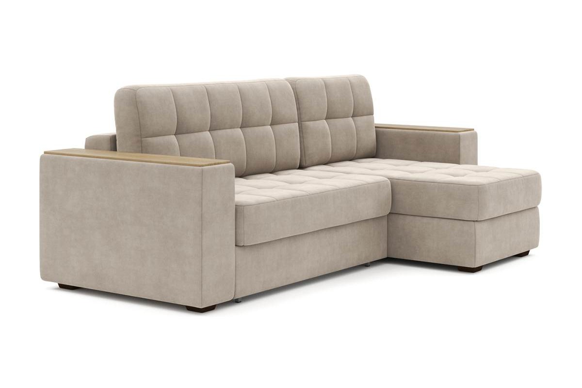 Угловой диван Гринвич NEXT 22 узкие подлокотники декор дуб каньон тик-так велюр бежевый 256х100х160 металлокаркас артикул 10478452