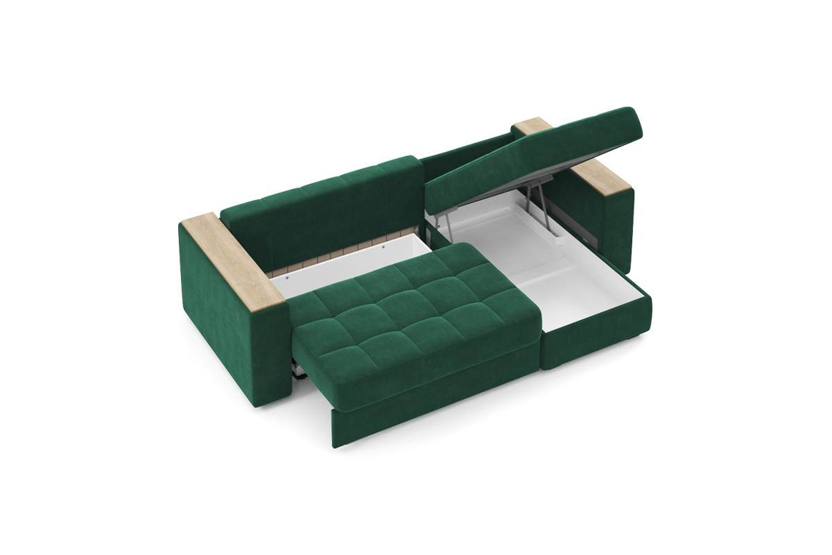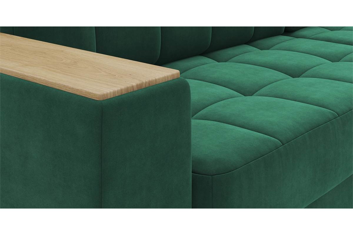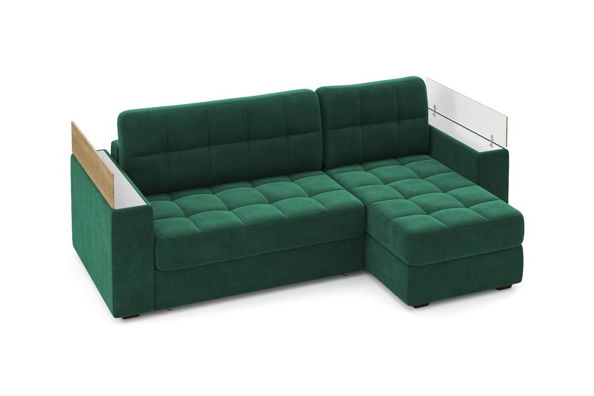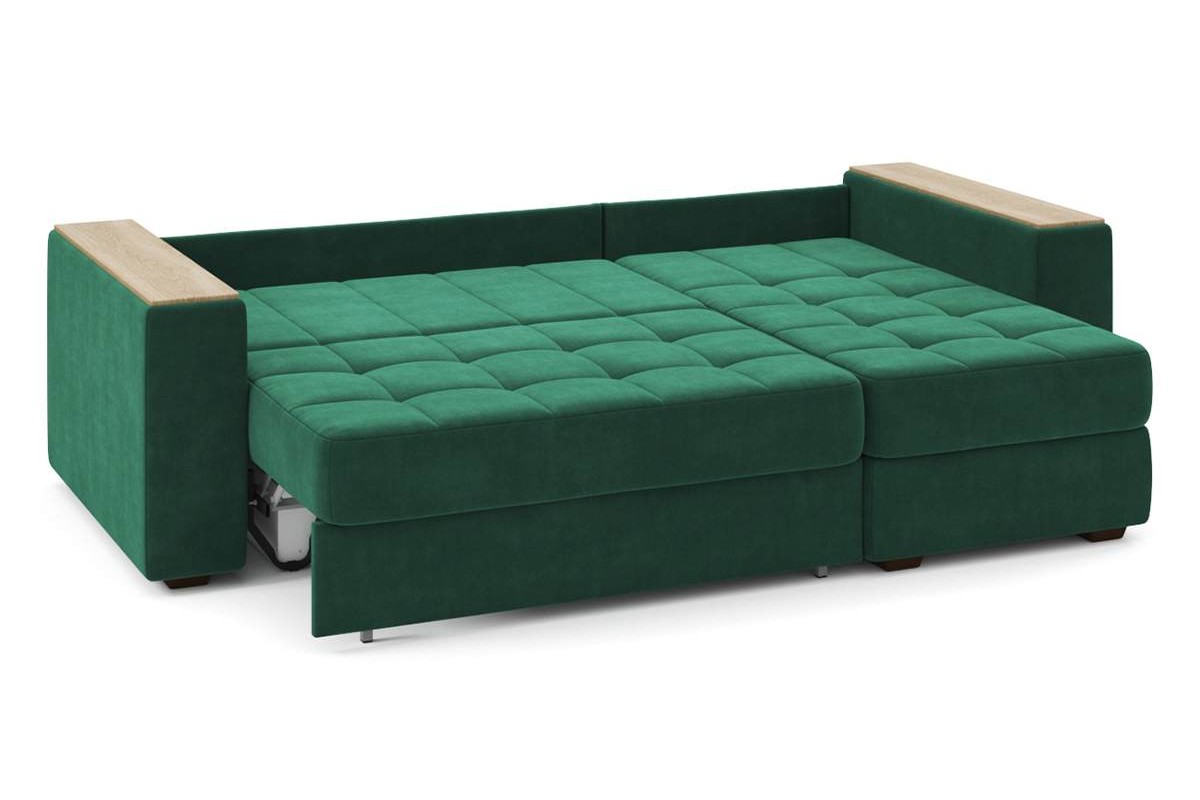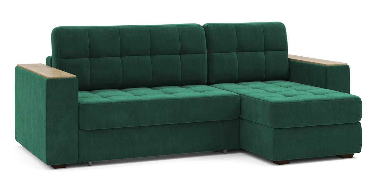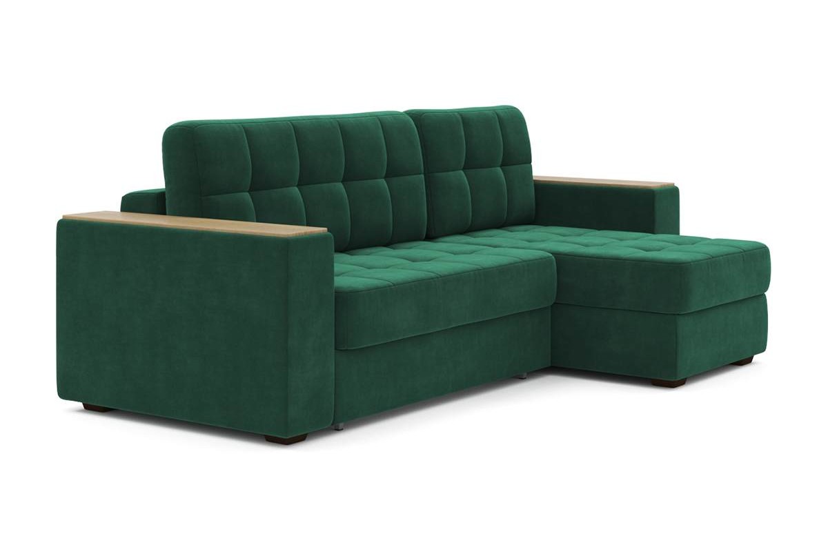 Угловой диван Гринвич NEXT 22 узкие подлокотники декор дуб каньон тик-так велюр зеленый 256х100х160 металлокаркас артикул 10478453