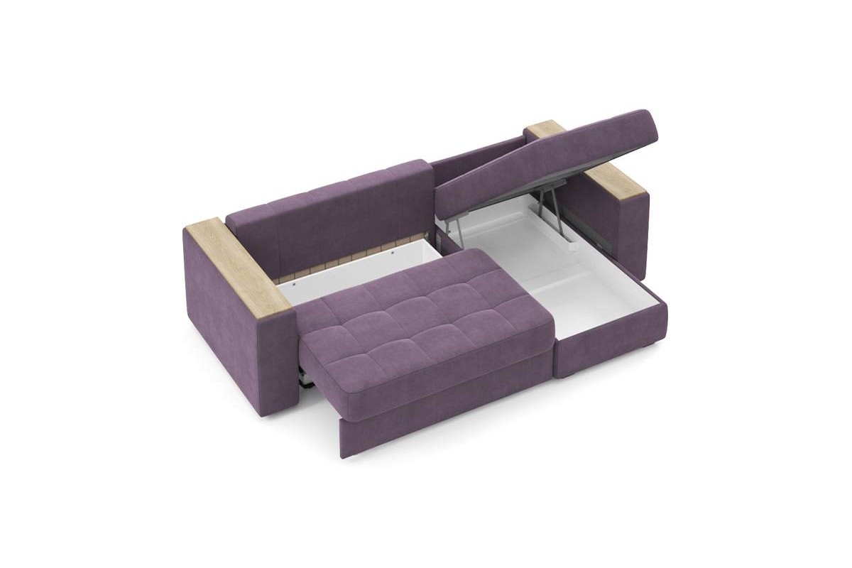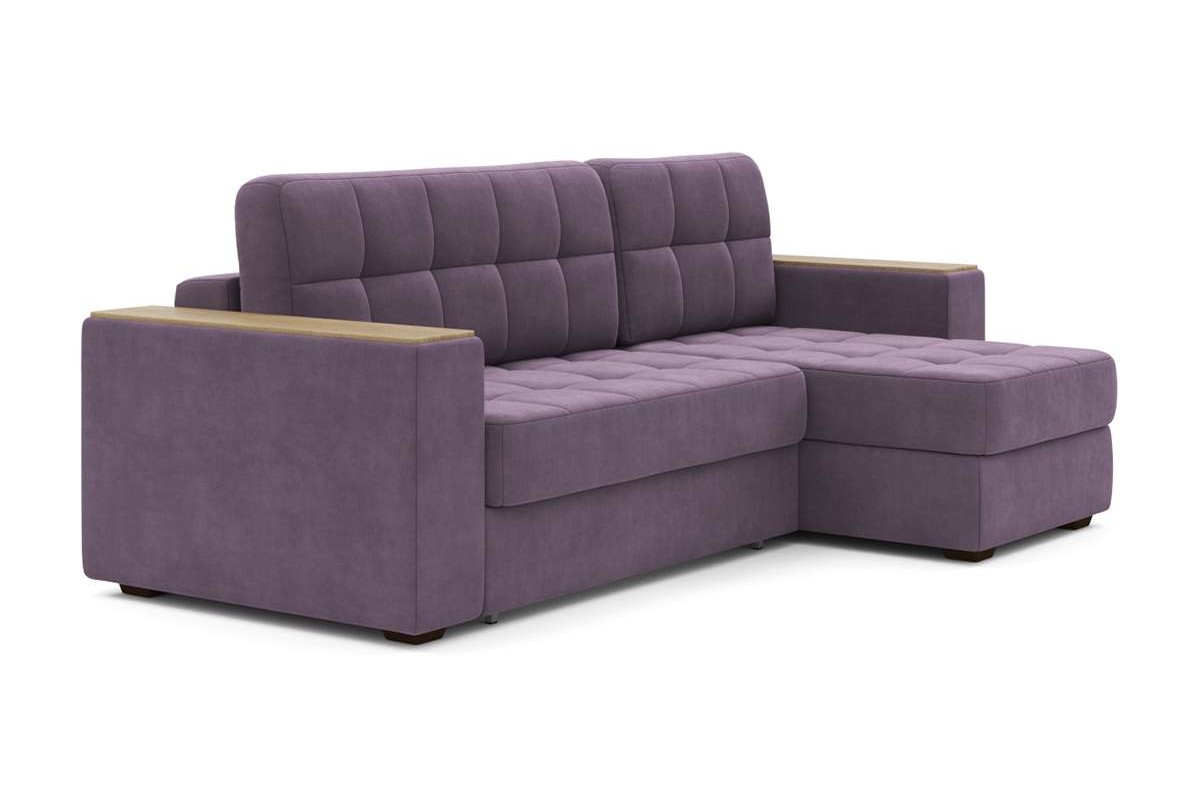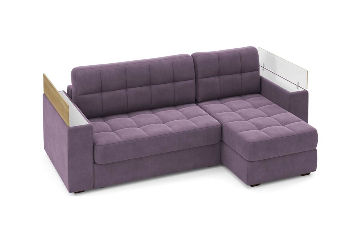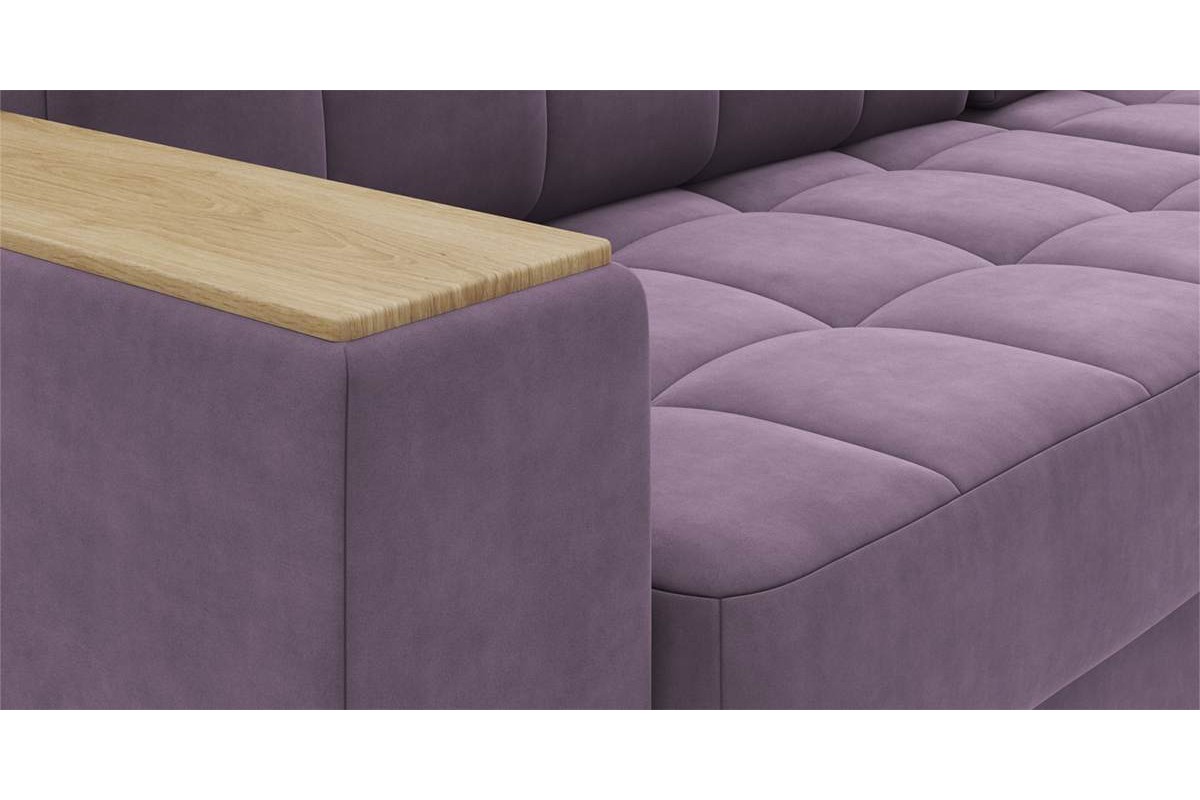 Угловой диван Гринвич NEXT 22 узкие подлокотники декор дуб каньон тик-так велюр фиолетовый 256х100х160 металлокаркас артикул 10478456