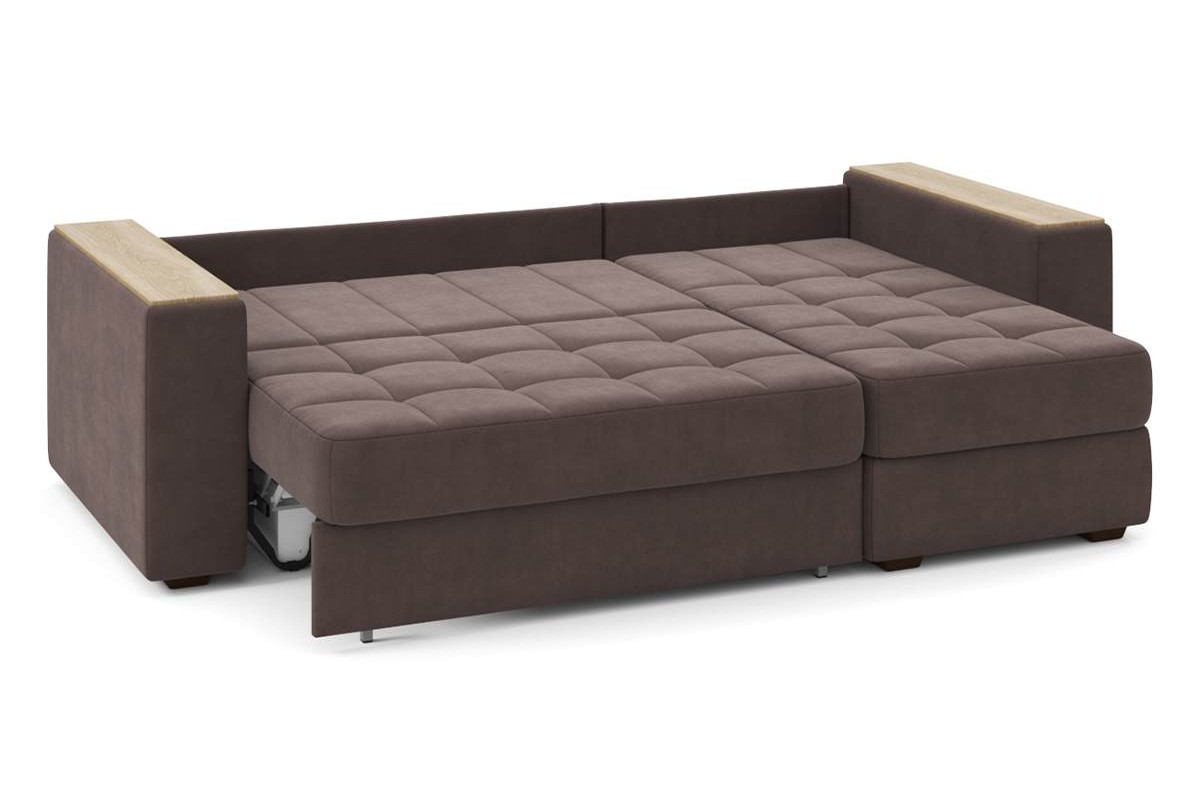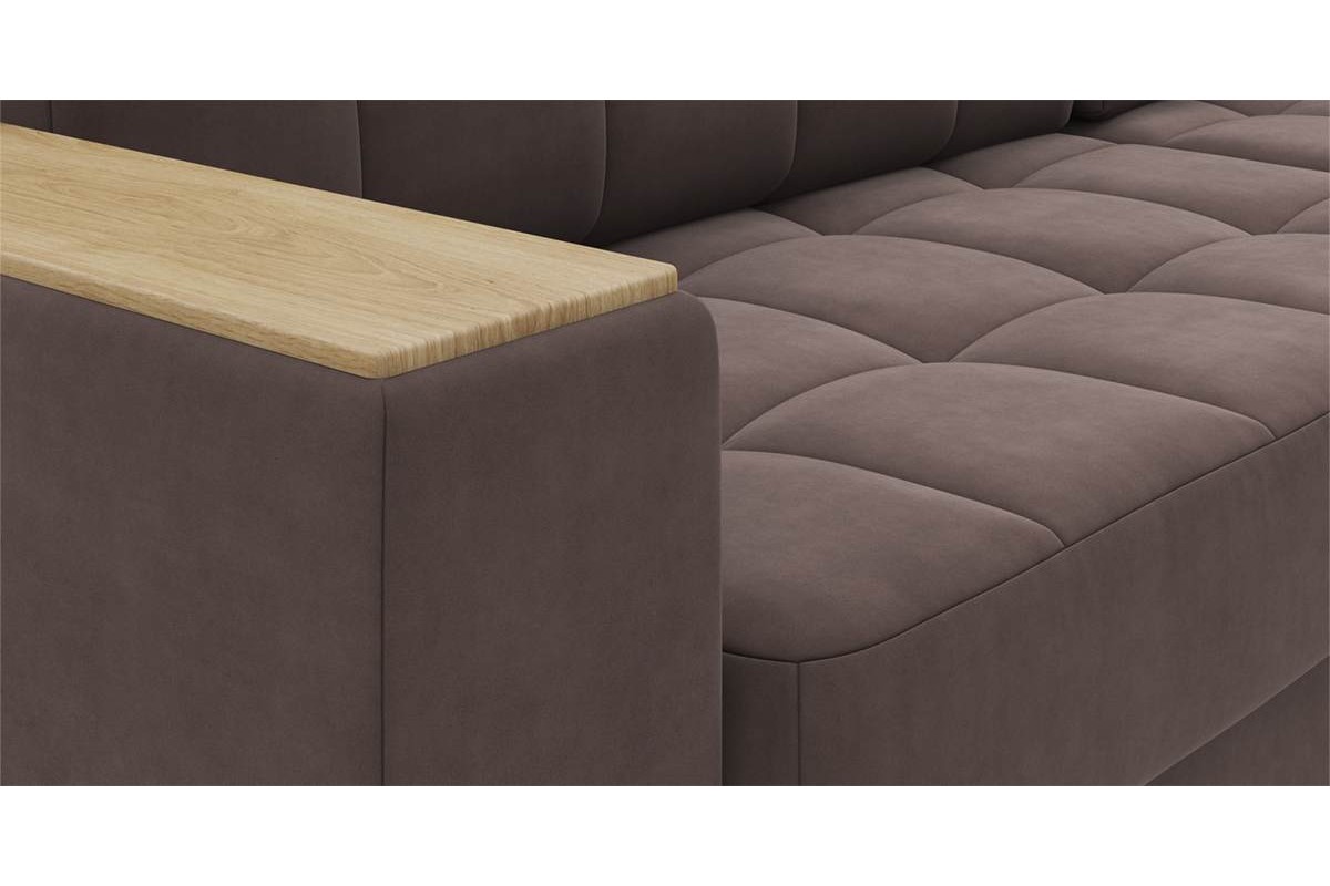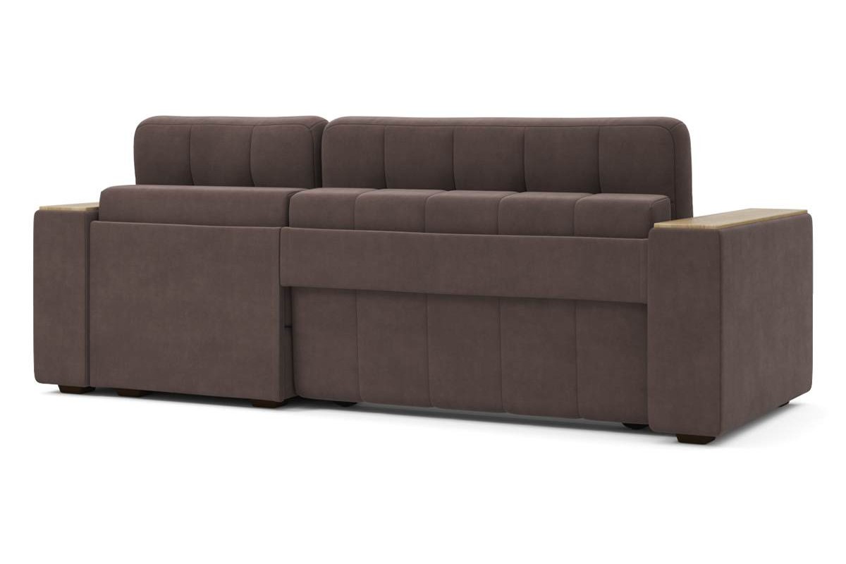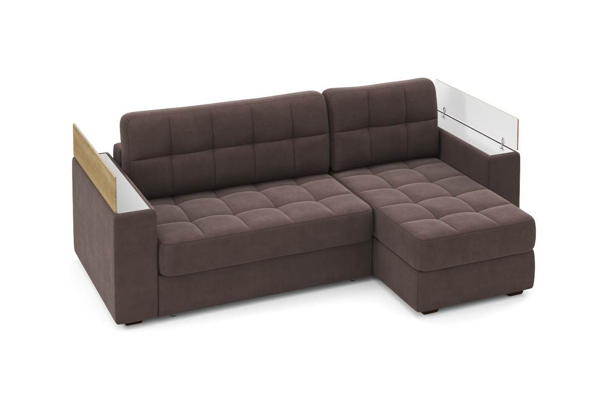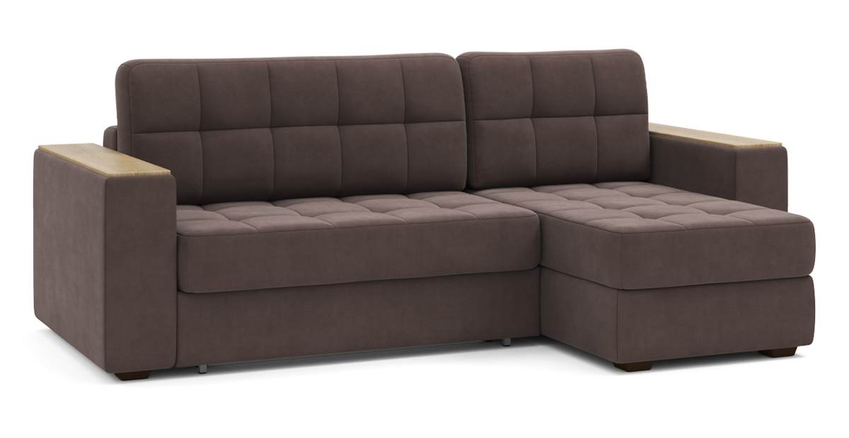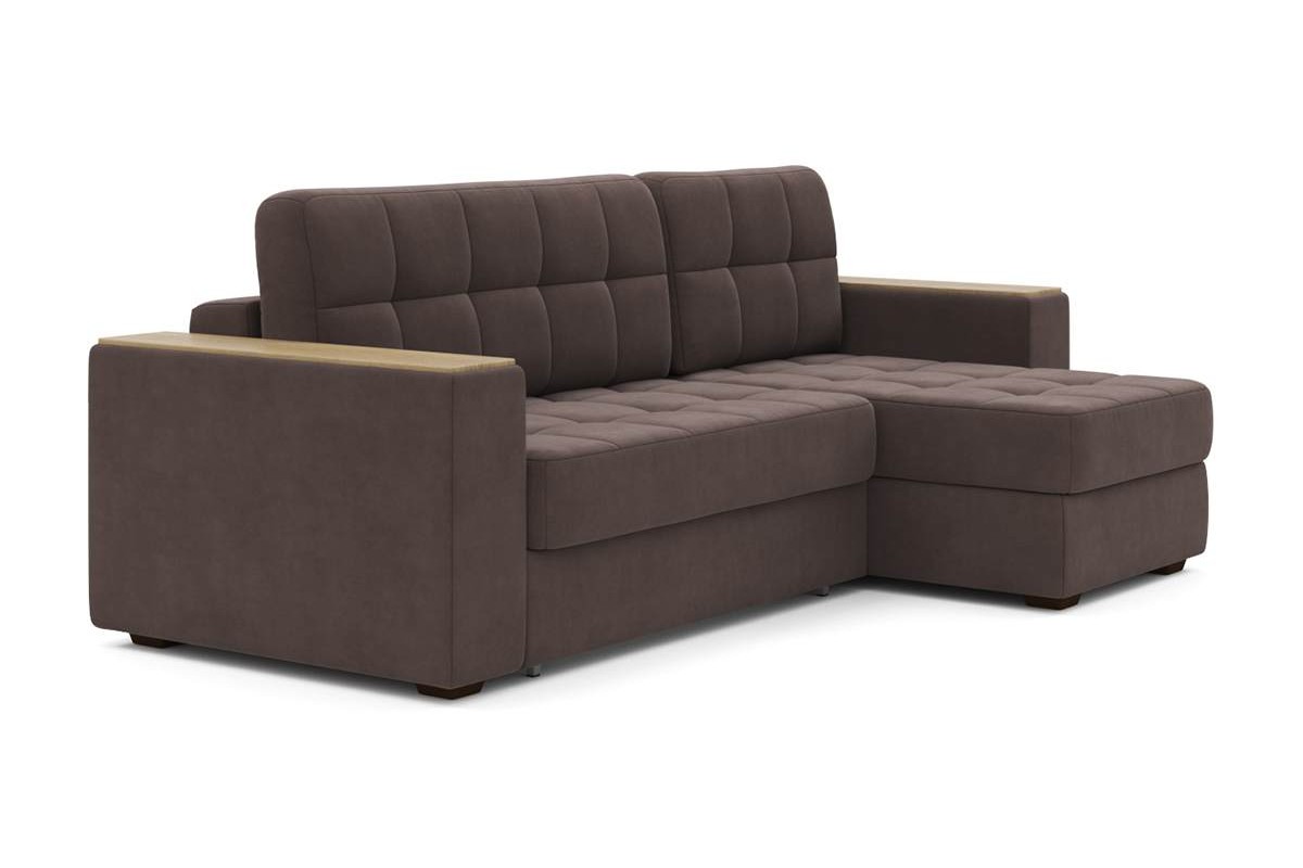Угловой диван Гринвич NEXT 22 узкие подлокотники декор дуб каньон тик-так велюр коричневый 256х100х160 металлокаркас артикул 10478458