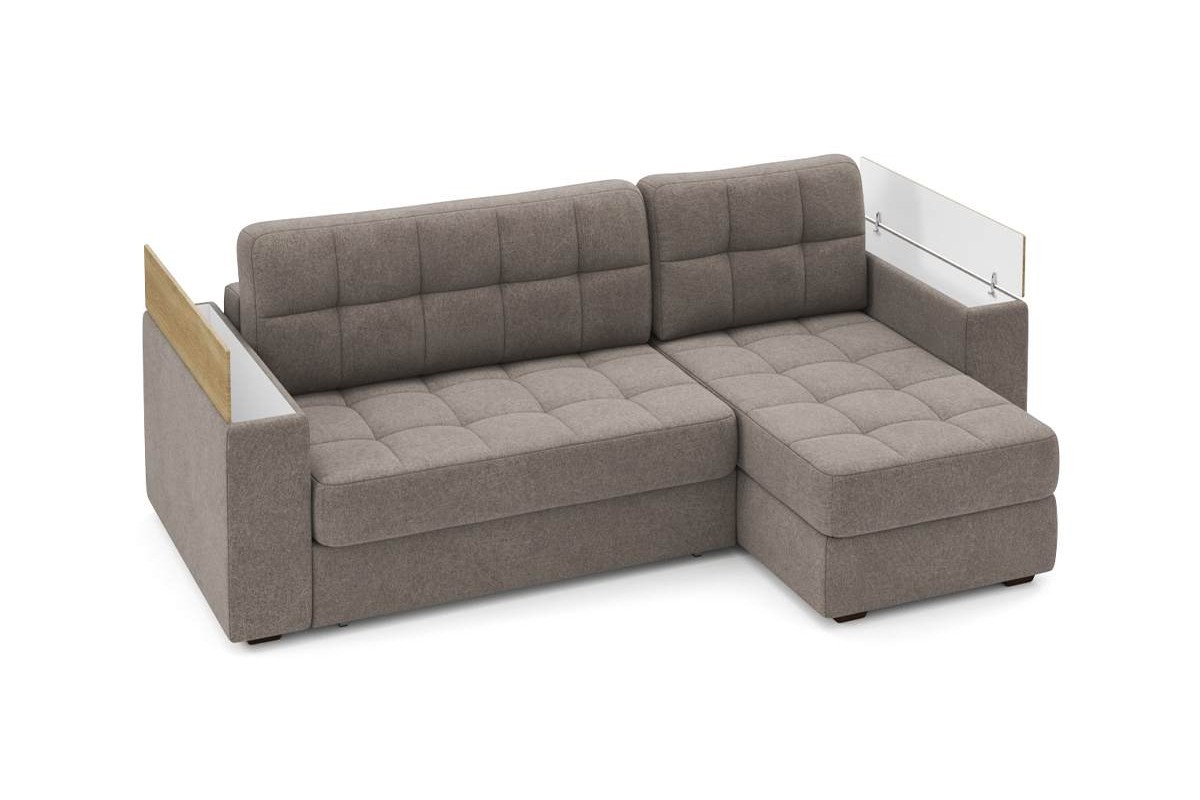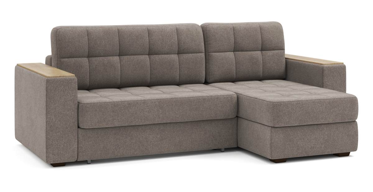 Угловой диван Гринвич NEXT 22 узкие подлокотники декор дуб каньон тик-так велюр коричневый 256х100х160 металлокаркас артикул 10478460
