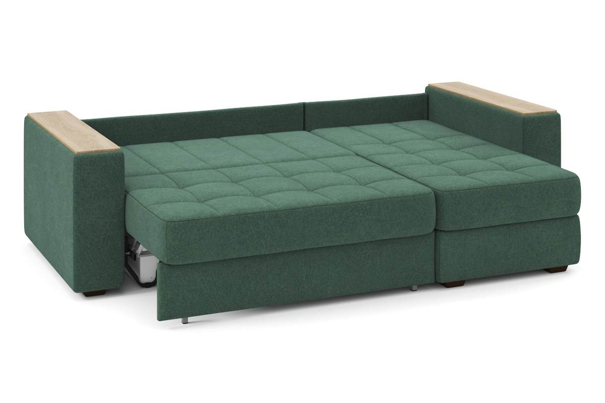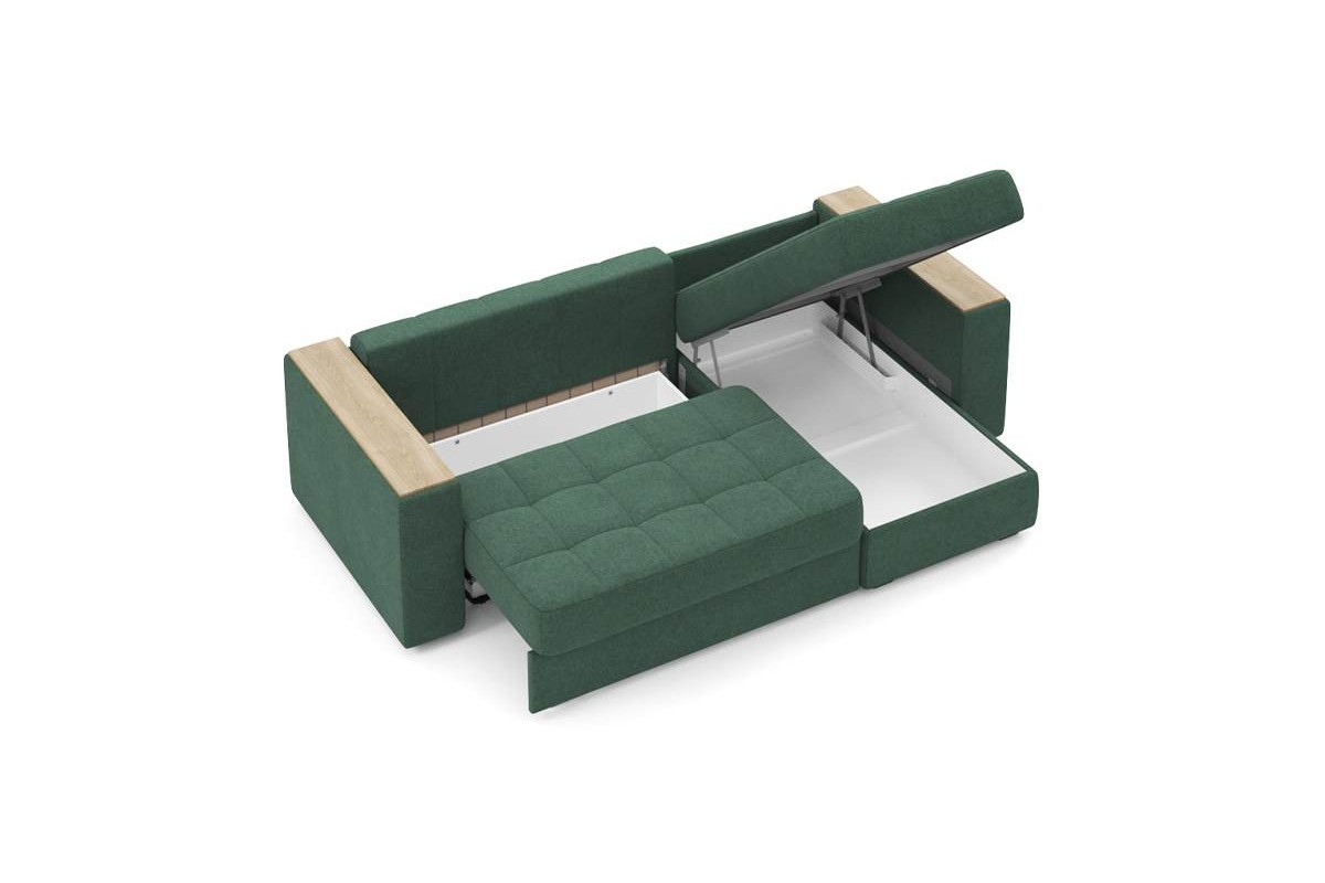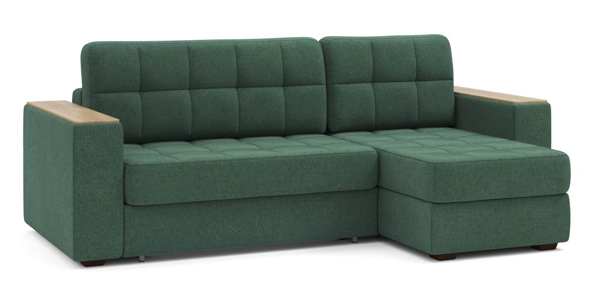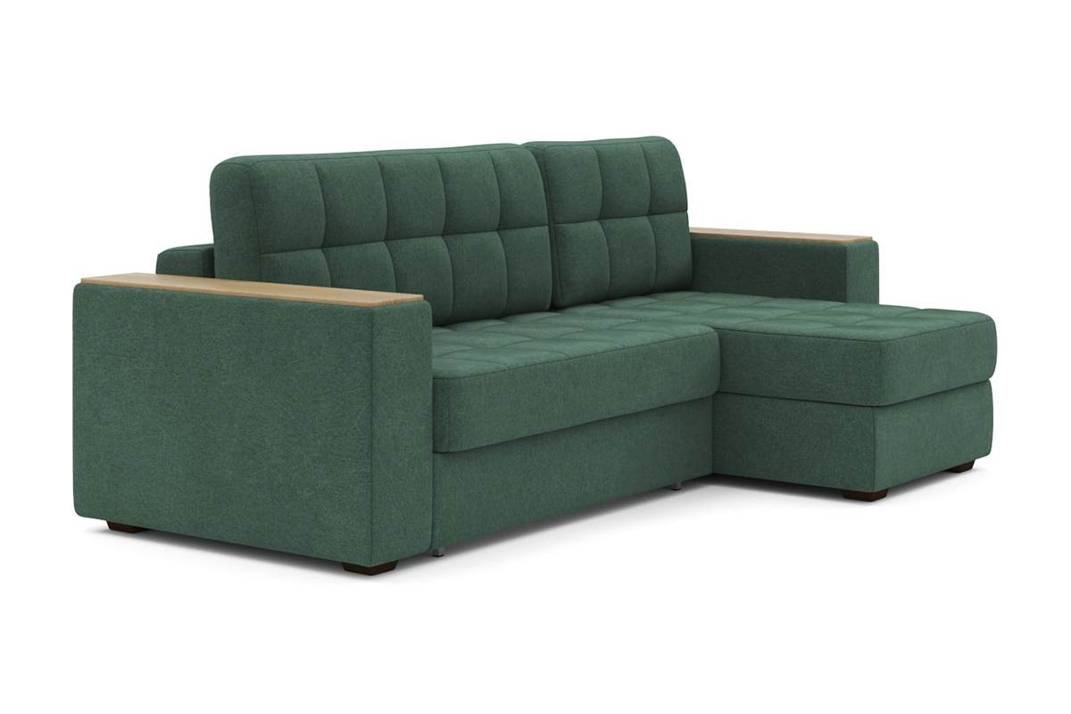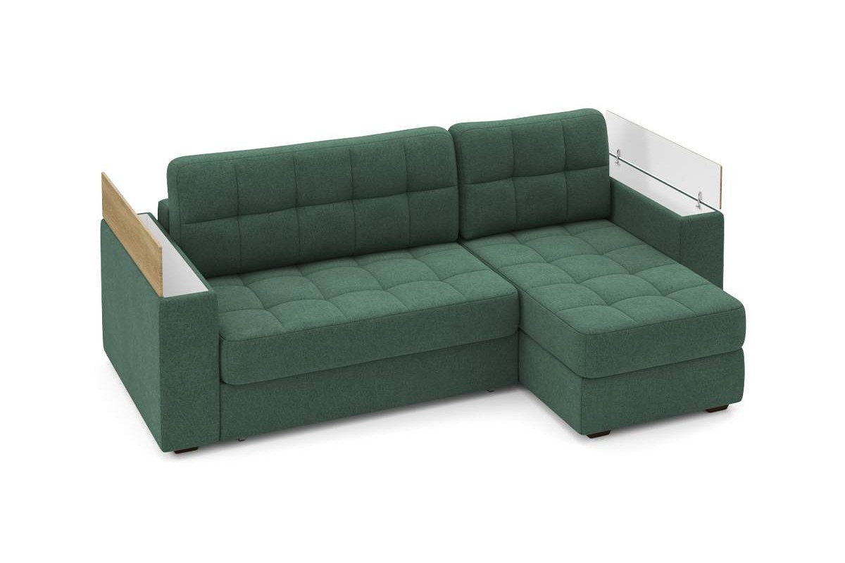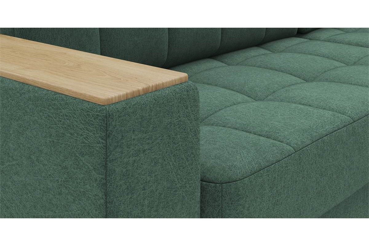 Угловой диван Гринвич NEXT 22 узкие подлокотники декор дуб каньон тик-так велюр зеленый 256х100х160 металлокаркас артикул 10478462