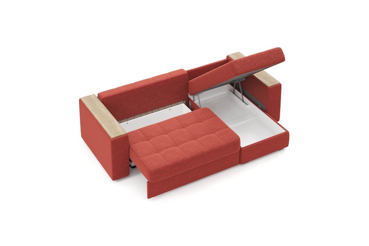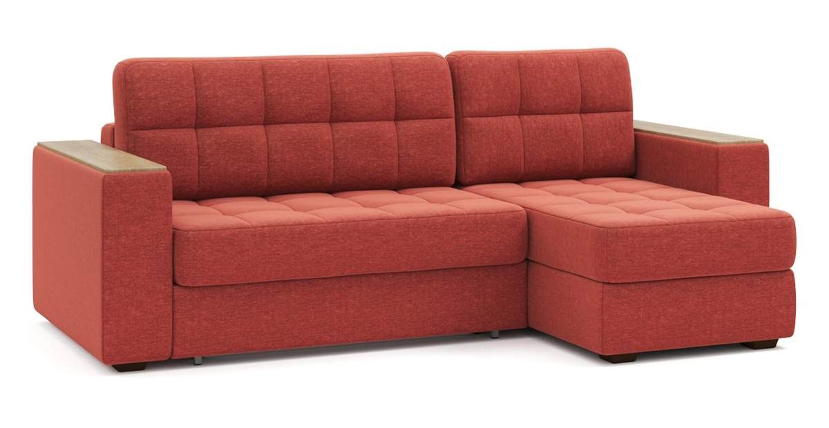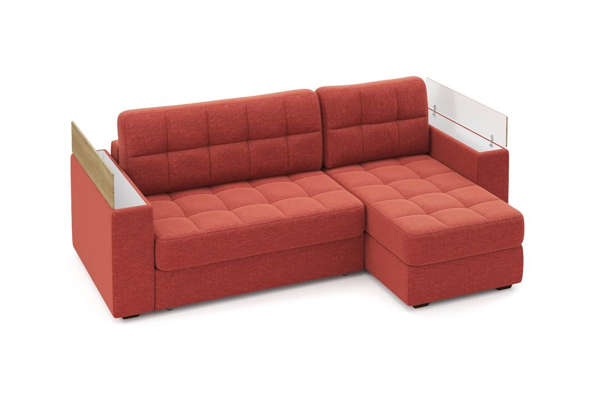 Угловой диван Гринвич NEXT 22 узкие подлокотники декор дуб каньон тик-так шенилл красный 256х100х160 металлокаркас артикул 10478468