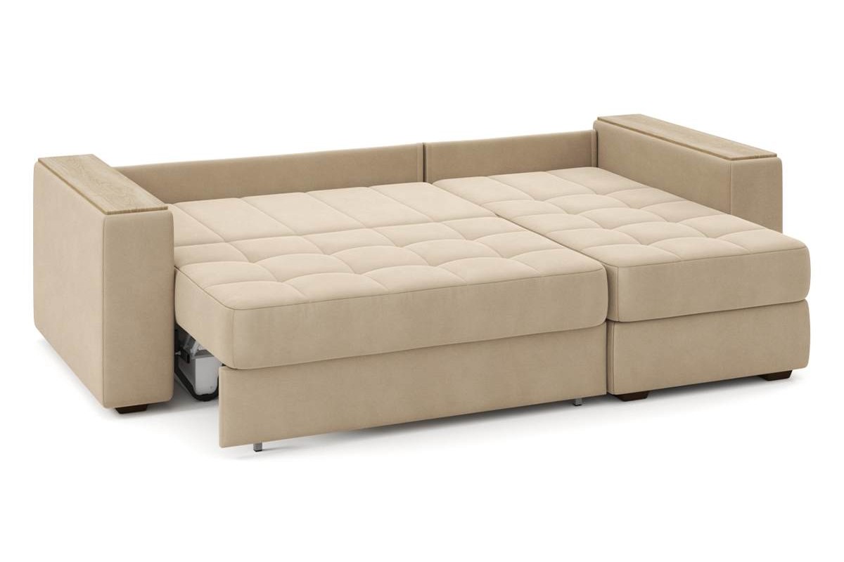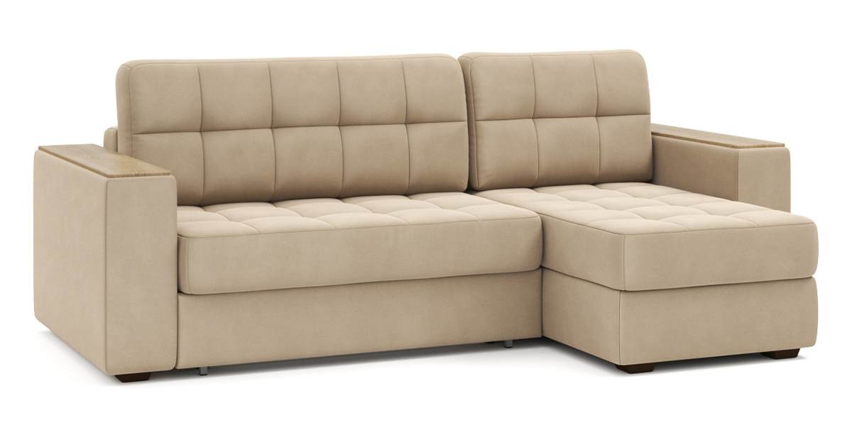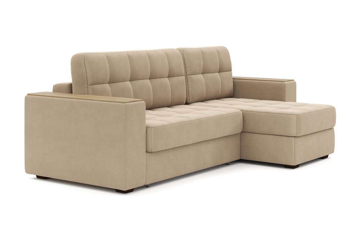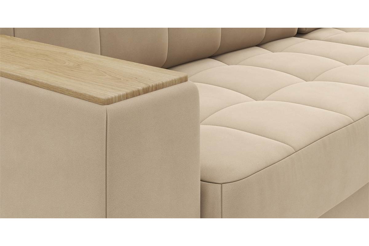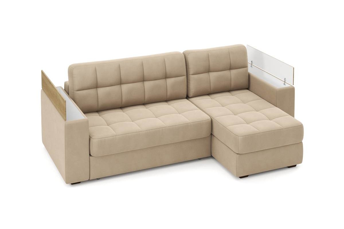 Угловой диван Гринвич NEXT 22 узкие подлокотники декор дуб каньон тик-так велюр бежевый 256х100х160 металлокаркас артикул 10478474