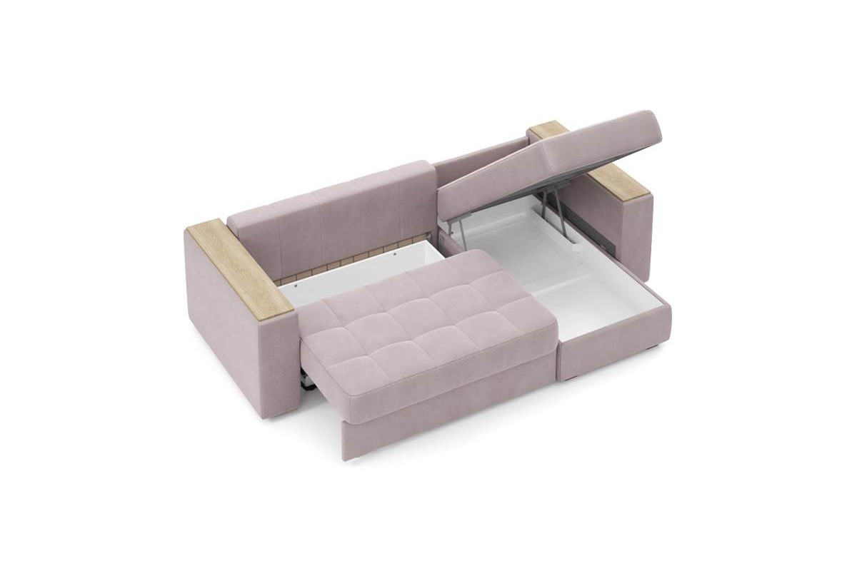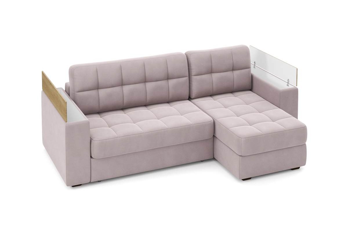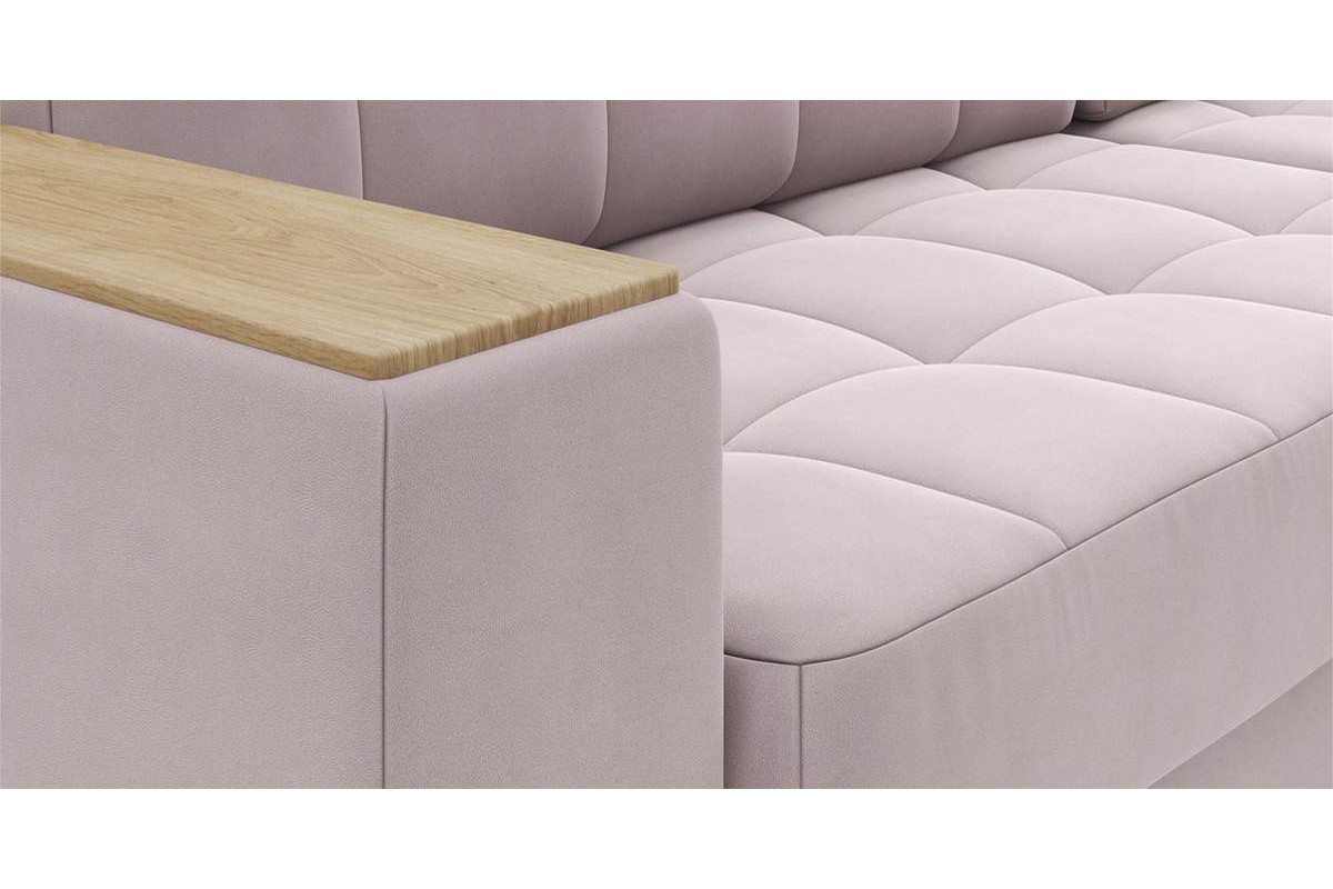 Угловой диван Гринвич NEXT 22 узкие подлокотники декор дуб каньон тик-так велюр розовый 256х100х160 металлокаркас артикул 10478477