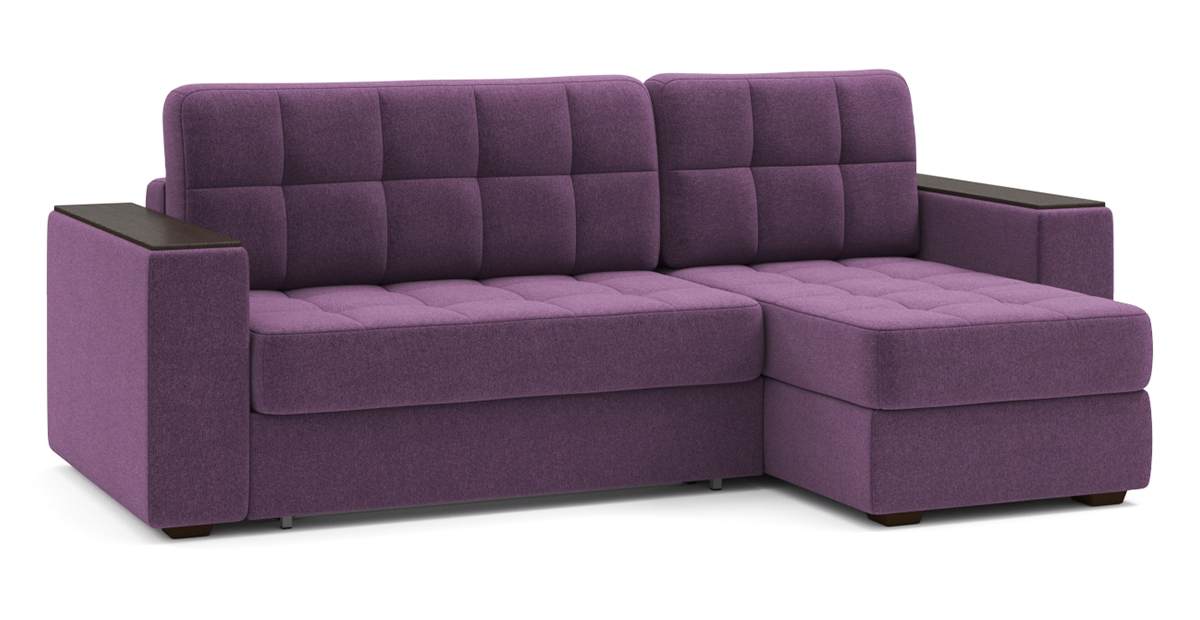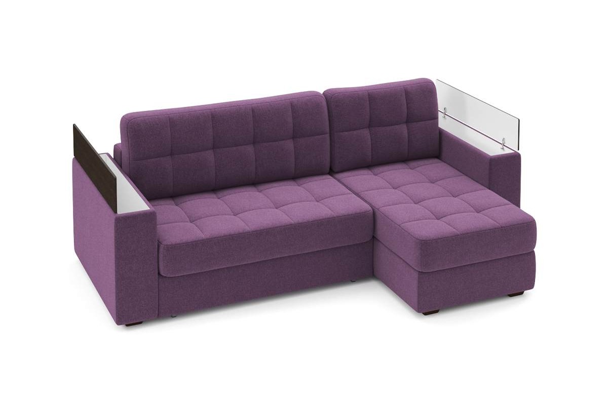 Угловой диван Гринвич NEXT 22 узкие подлокотники декор венге тик-так микрошенилл фиолетовый 256х100х160 металлокаркас артикул 10478340