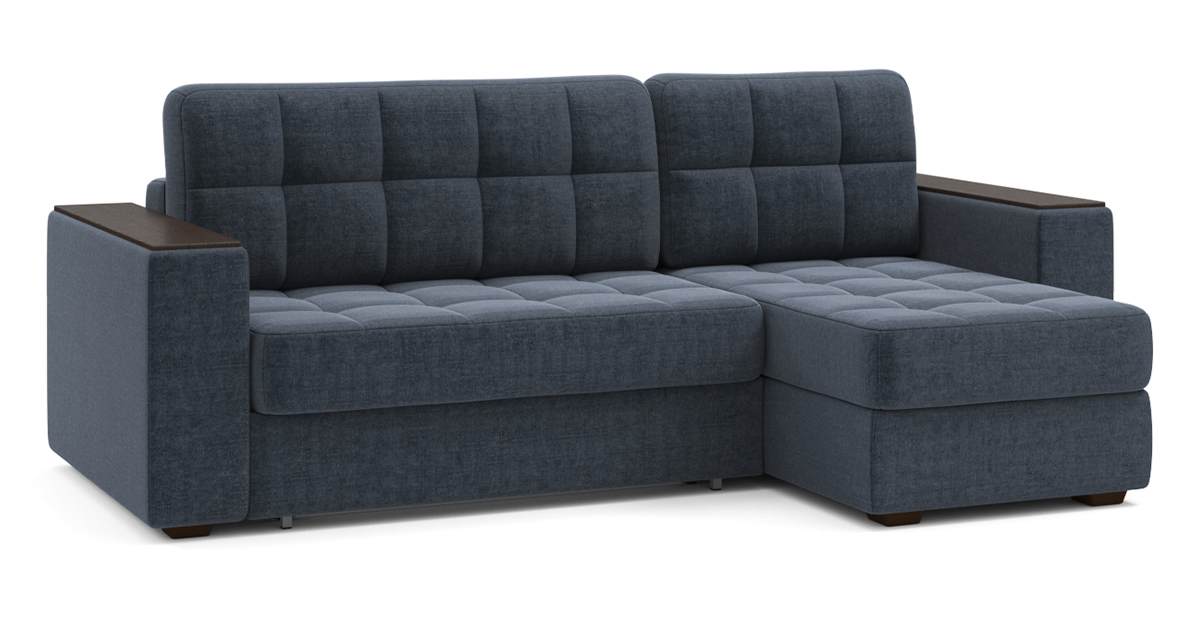 Угловой диван Гринвич NEXT 22 узкие подлокотники декор венге тик-так шенилл синий 256х100х160 металлокаркас артикул 10478345