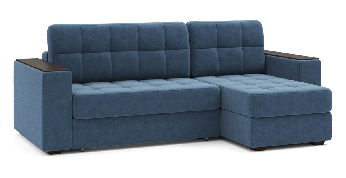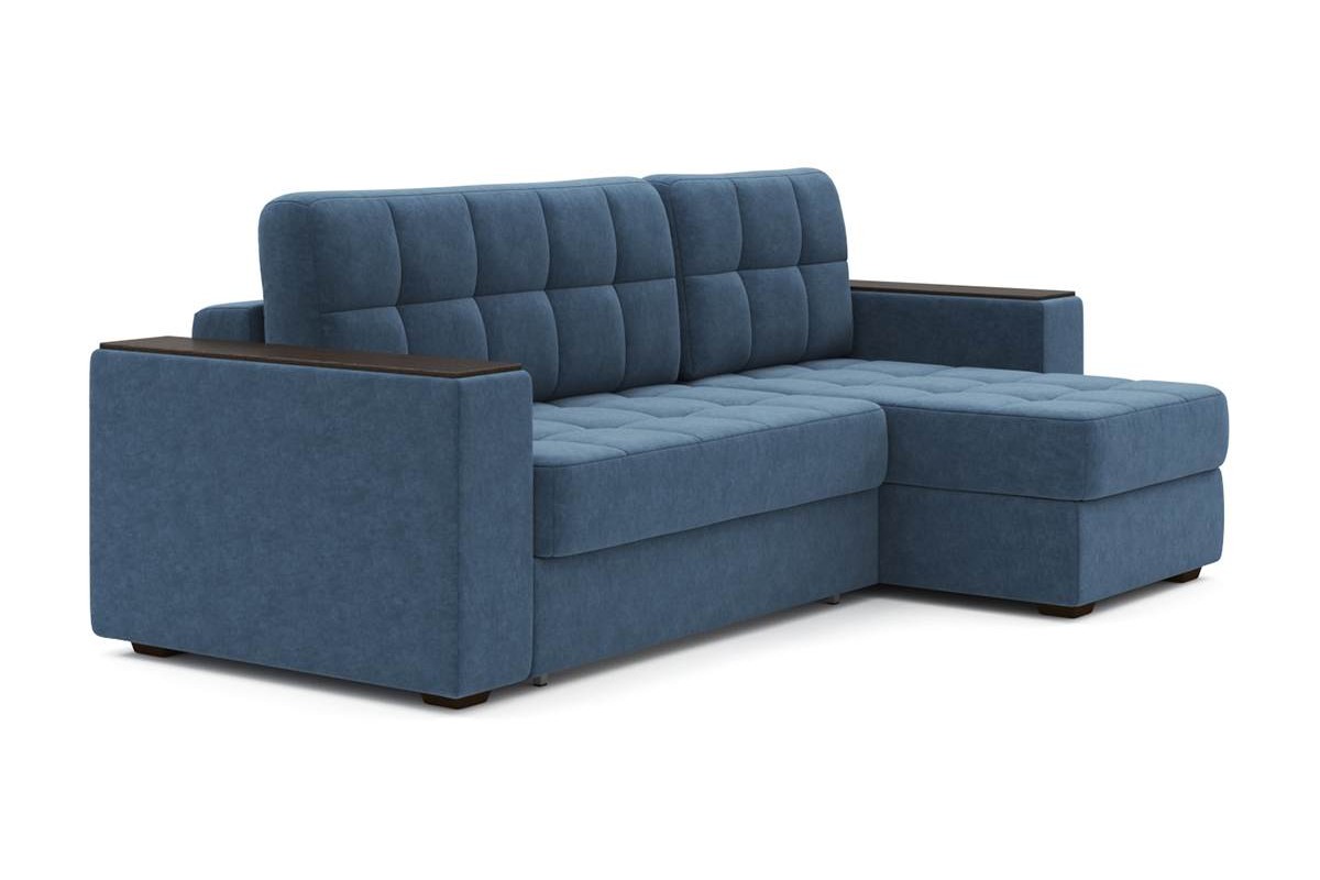 Угловой диван Гринвич NEXT 22 узкие подлокотники декор венге тик-так велюр синий 256х100х160 металлокаркас артикул 10478347