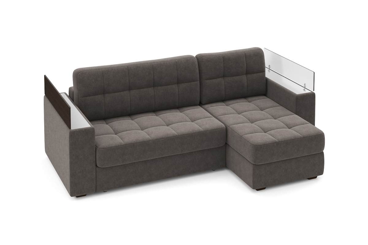 Угловой диван Гринвич NEXT 22 узкие подлокотники декор венге тик-так велюр коричневый 256х100х160 металлокаркас артикул 10478348